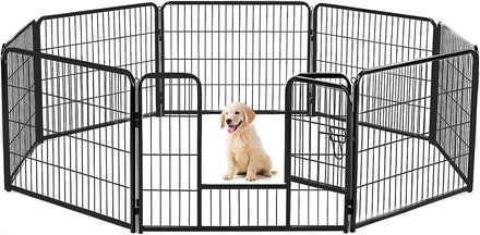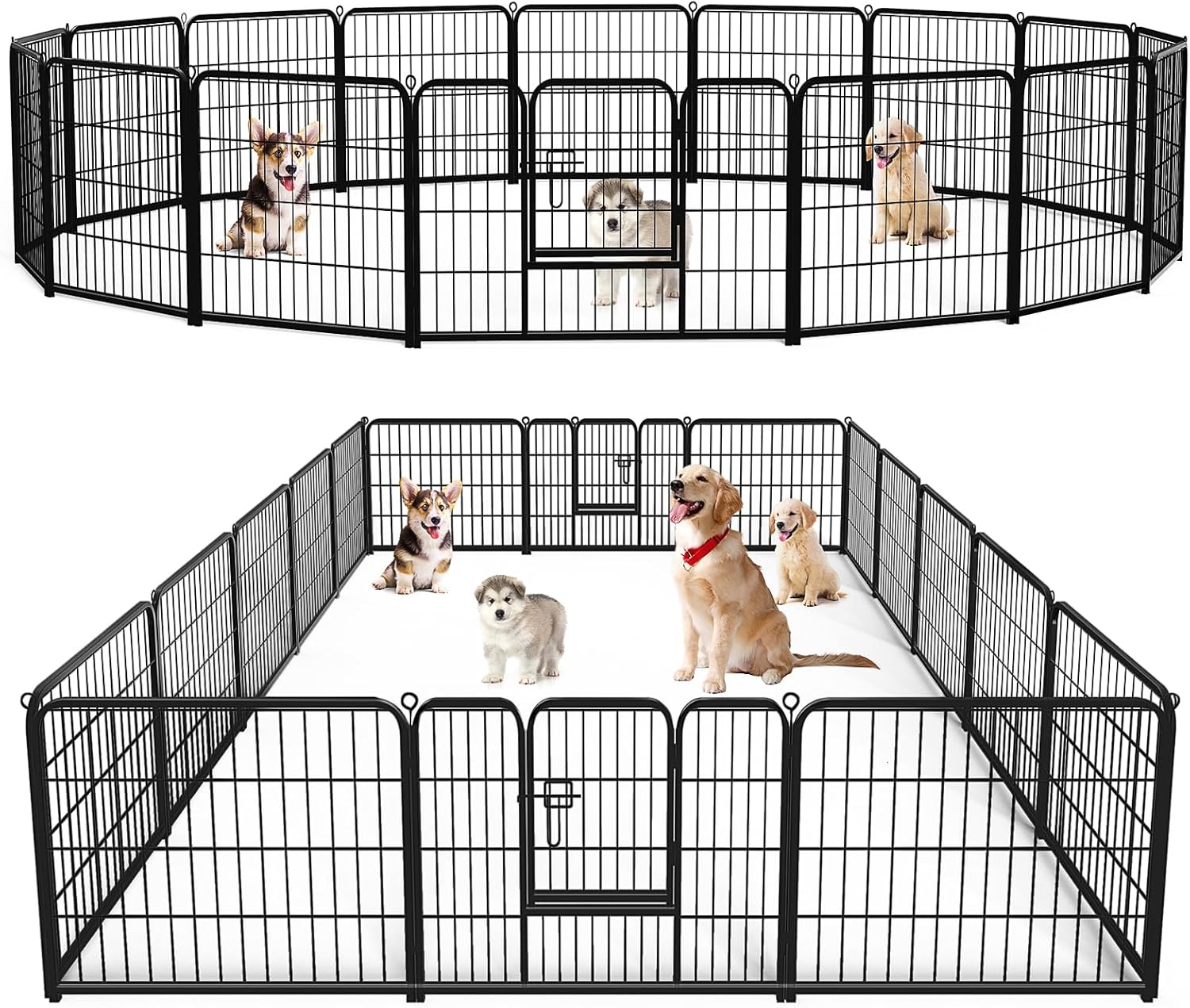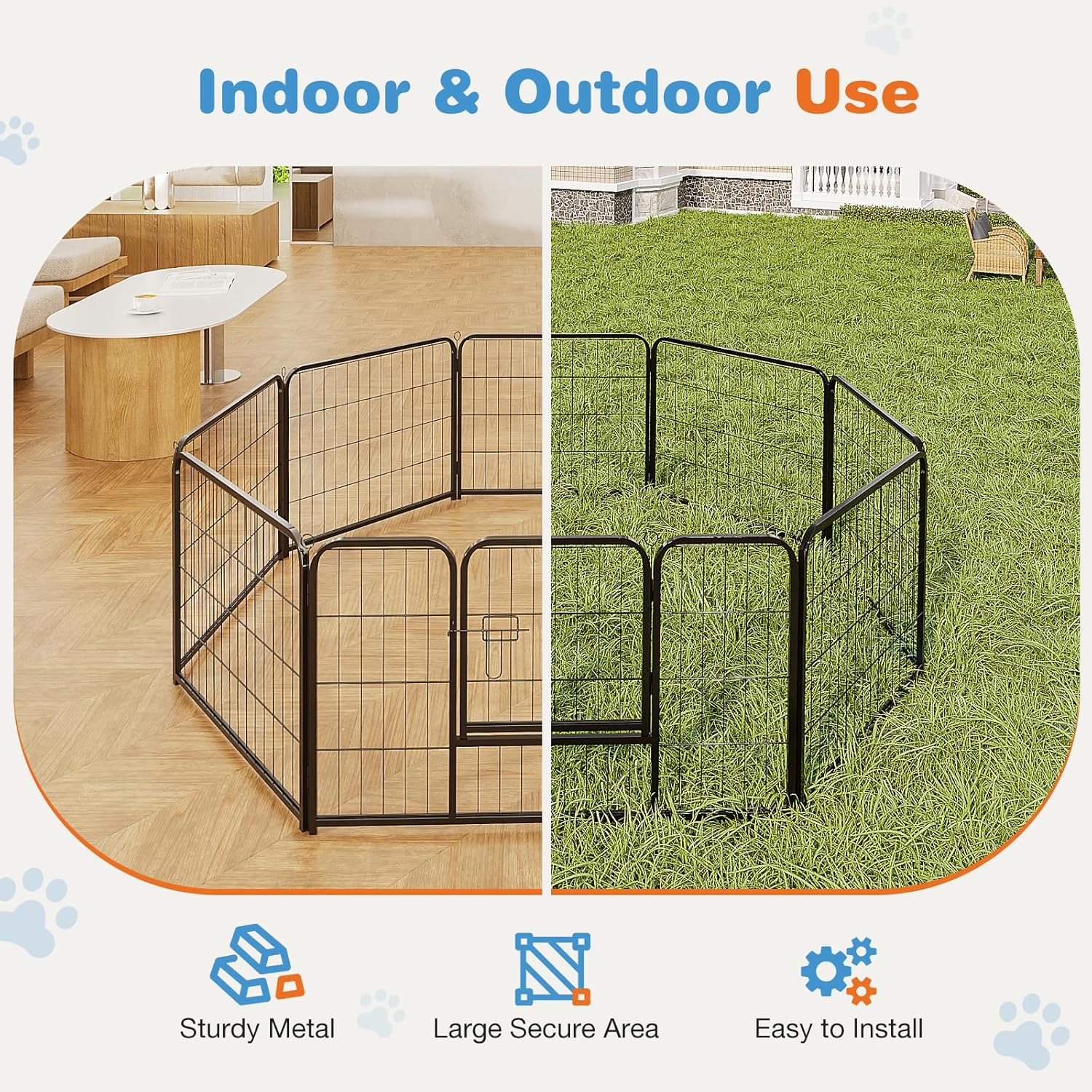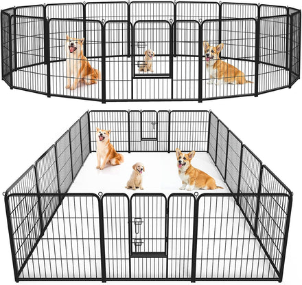 - 【Tailored Options for Every Pet】 Available in 8-panel and 16-panel, with 3 kind of heights: 24”, 32”, and 40”. Our diverse selection ensures a perfect fit for dogs of all sizes and accommodates various pets, such as kitten, cats, rabbits and so on, providing a reliable and comfortable space for all. And it’s easy to assemble this foldable metal dog pen according to the desired area of use.