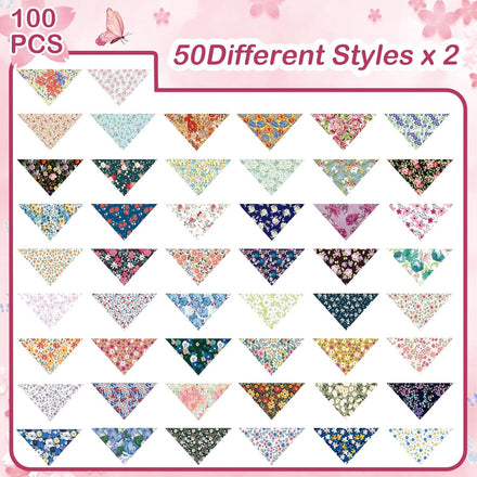 - Pack of 100: you will get 100 pieces of pet bandanas in 50 diverse styles, sufficient quantities and rich styles to meet your daily use and replacement needs, good for dog owner or pet groomer