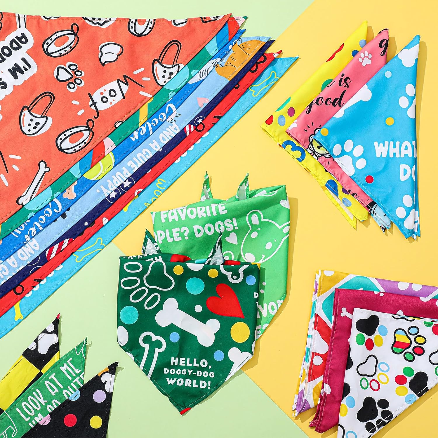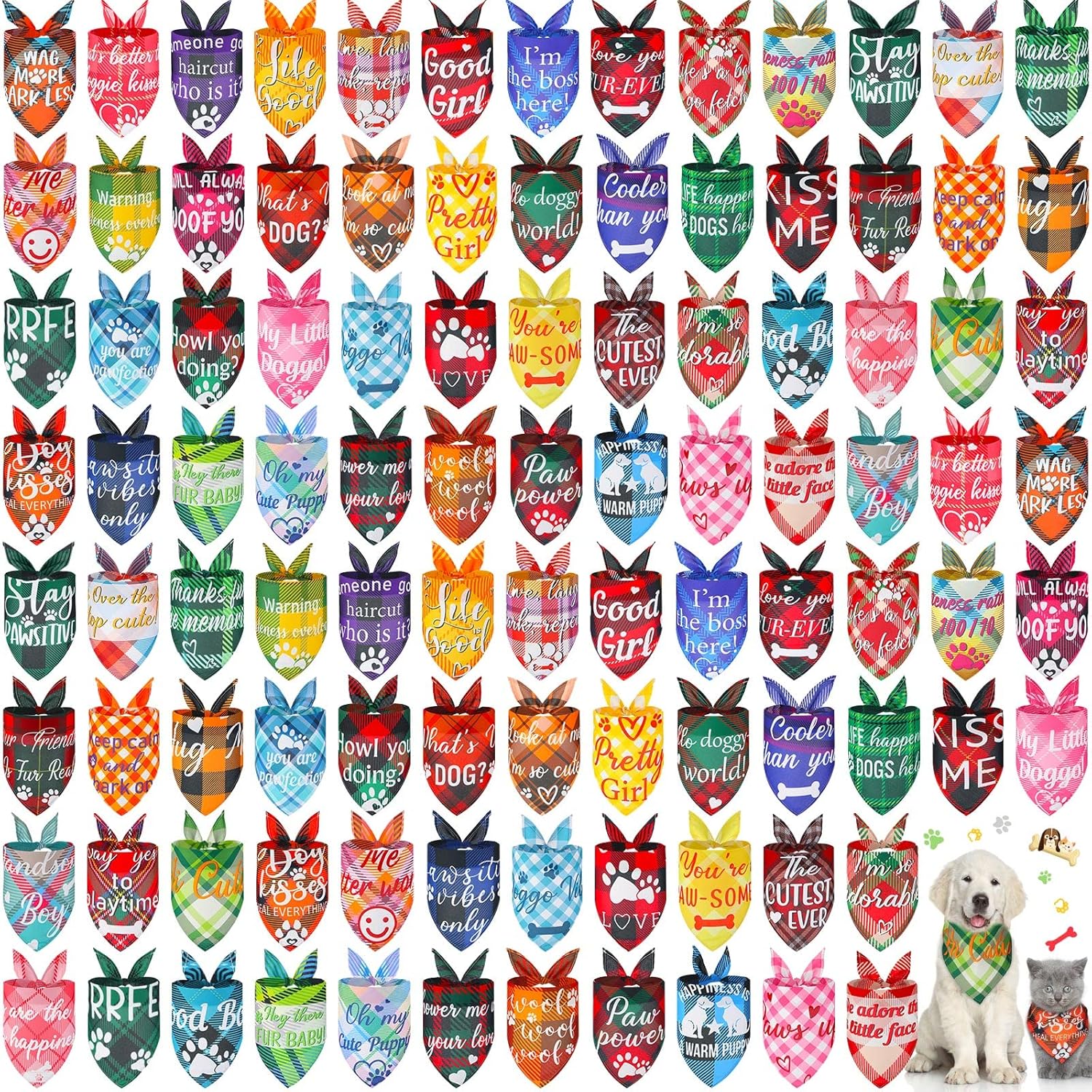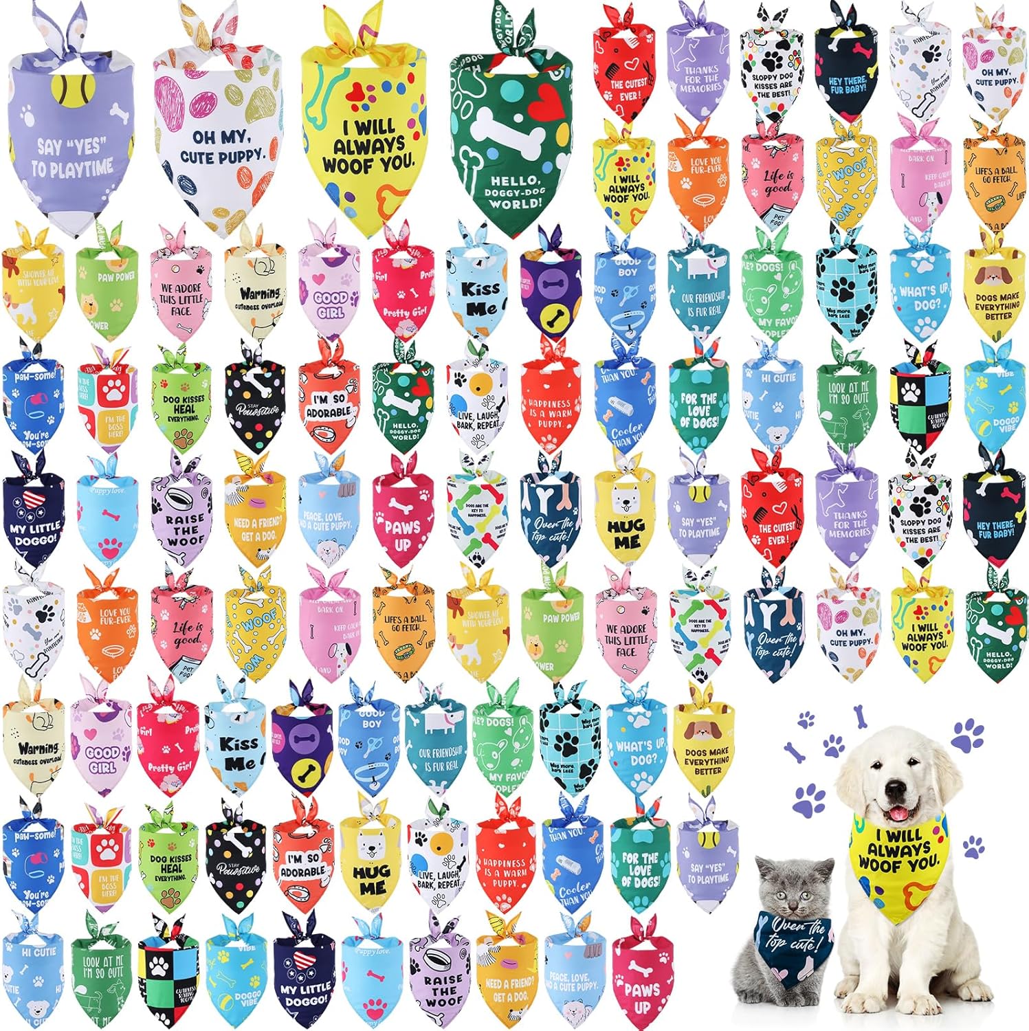 - Pet Themed Design: these pet bandanas are printed with 50 diverse pet patterns, featuring various colors and each pattern is designed with cute and creative caption, which will add a lot of fun and make your pets look more special