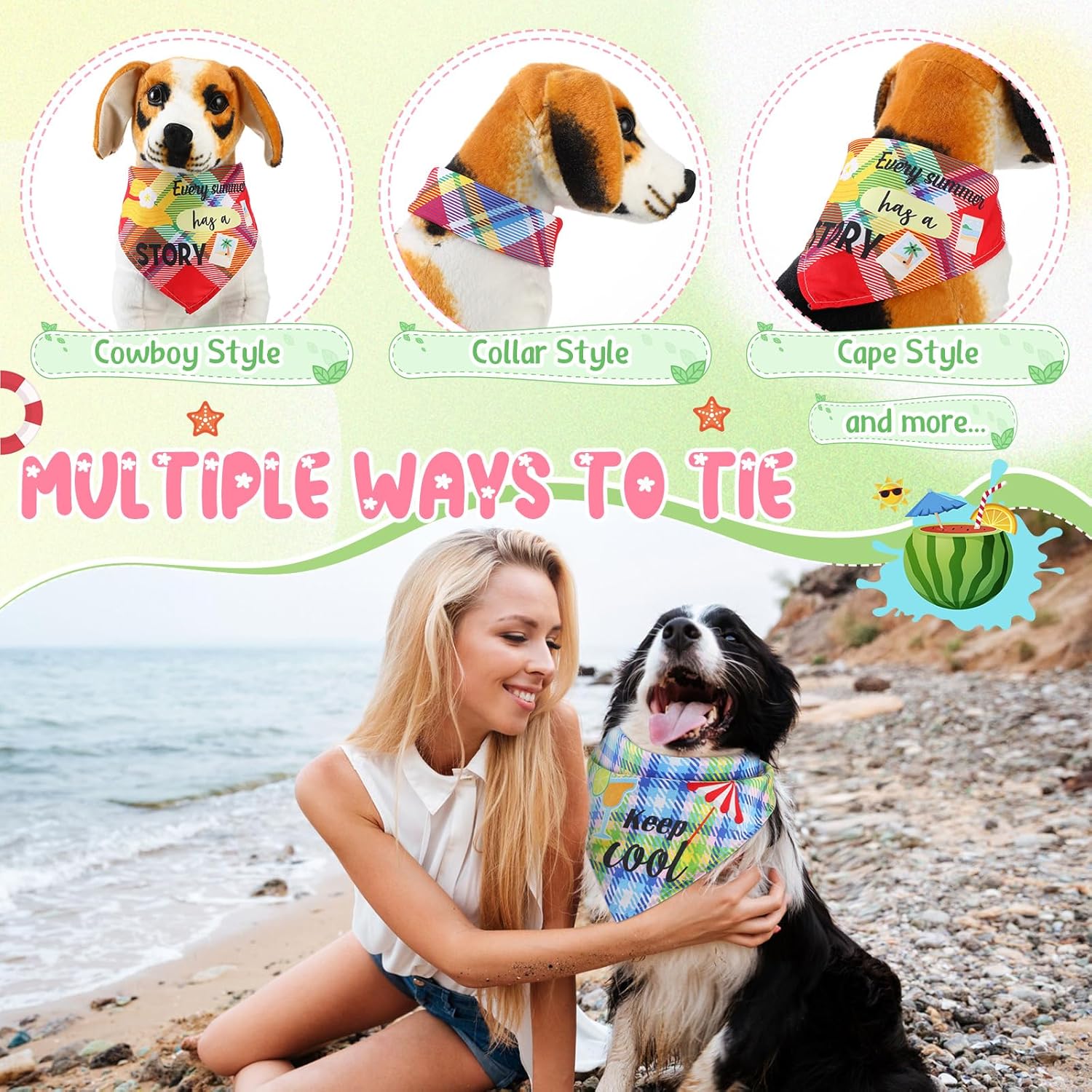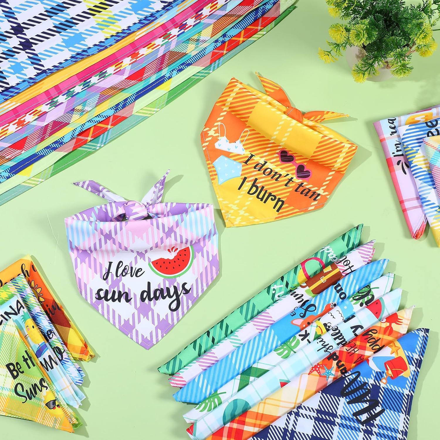 - Summer Theme Dog Bandannas: our bandannas for dogs and cats are printed with various classic plaid patterns and a variety of summer designs on the surface, such as pineapple, sun, leaves, flamingo and other summer elements, full of festive atmosphere, easy for your pet to match different colors of clothes and hats, making it more charming, bringing a pleasant experience