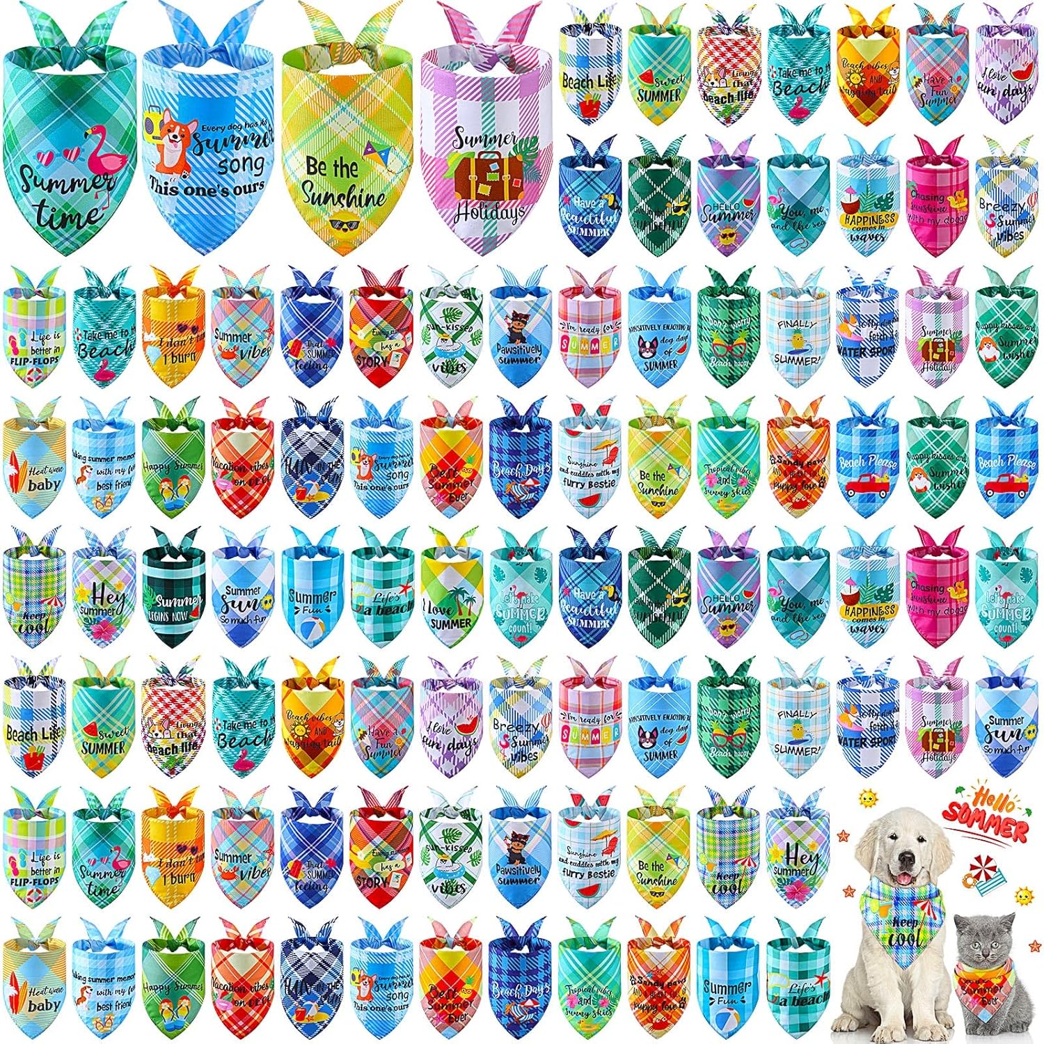 - Rich Patterns and Quantity: you will be provided with 100 pieces of summer plaid dog bandanas, available in distinctive patterns and bright colors, enough quantity and various styles can meet your pet's daily needs and replacement or share with your family or mates