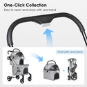 - Portability: double-decker pet carts can be folded and unfolded with a single click for easy storage and portability. They can be quickly folded into a compact size for easy placement in the trunk of the vehicle or indoors. In addition, double-decker pet carts are equipped with additional storage pockets or cup holders for pet owners to store necessary items.