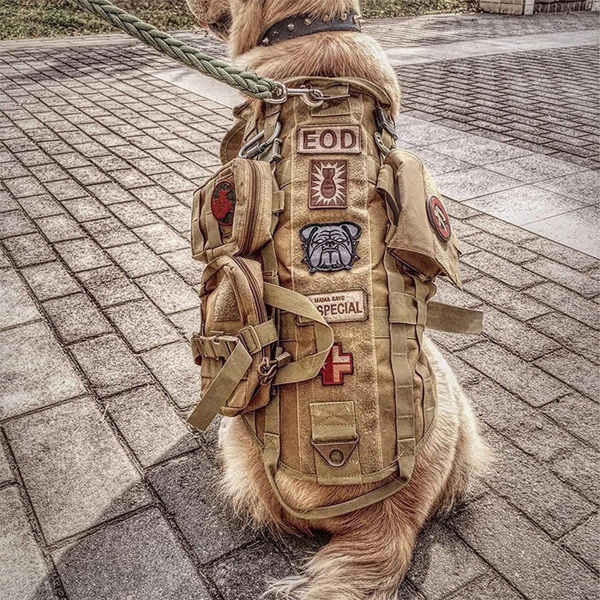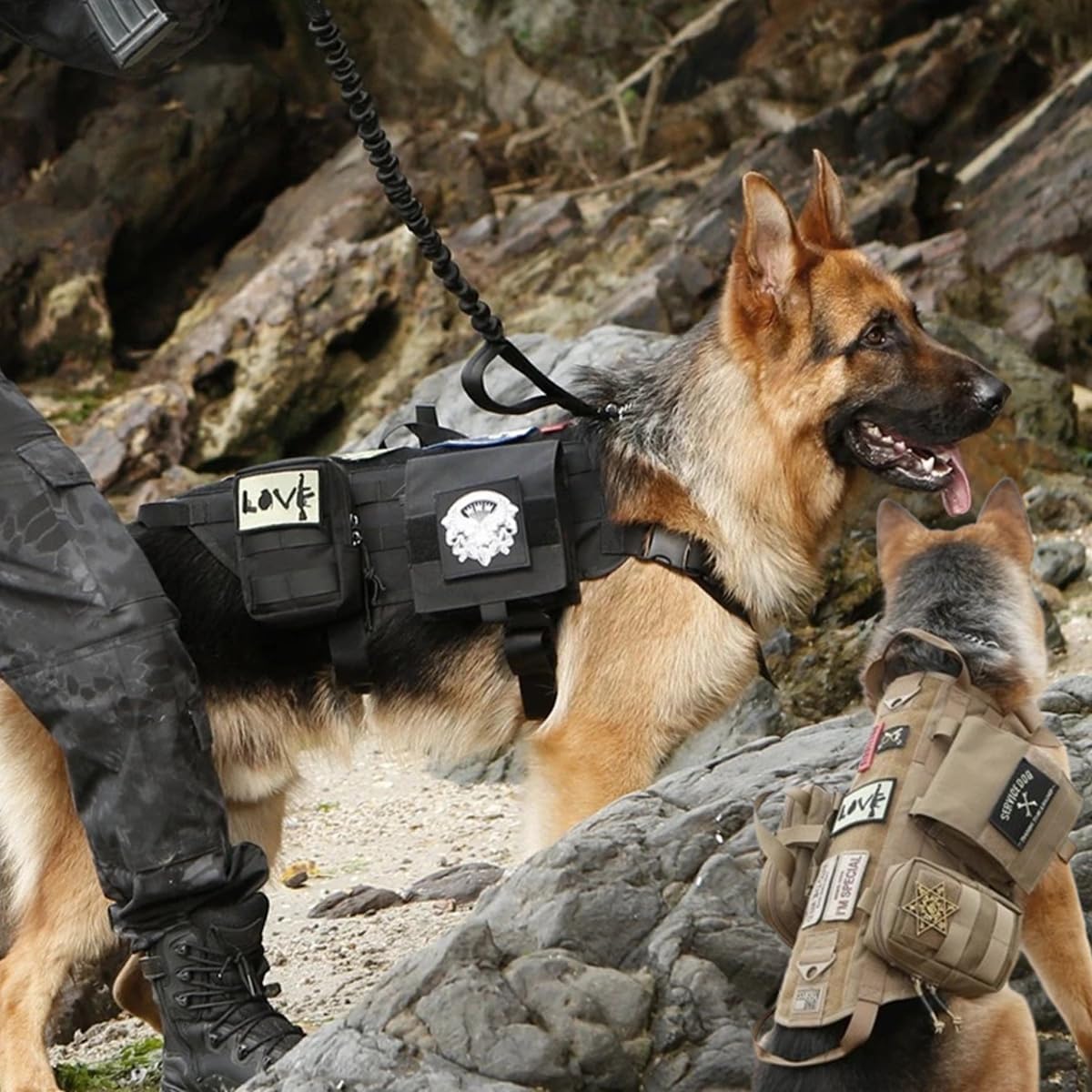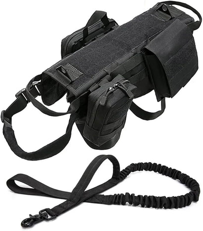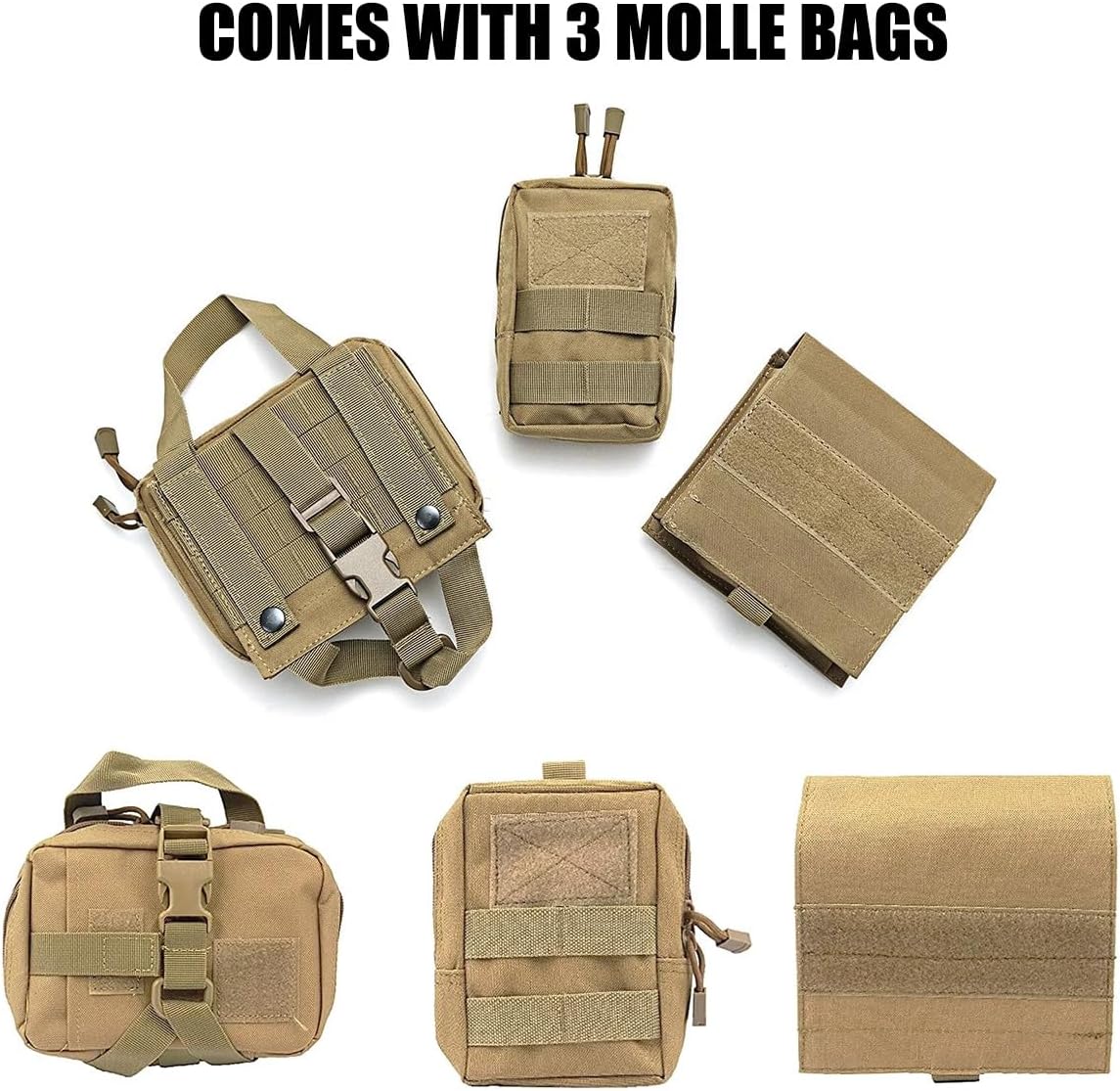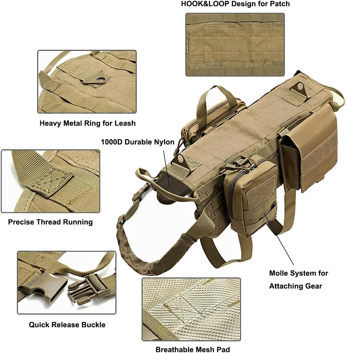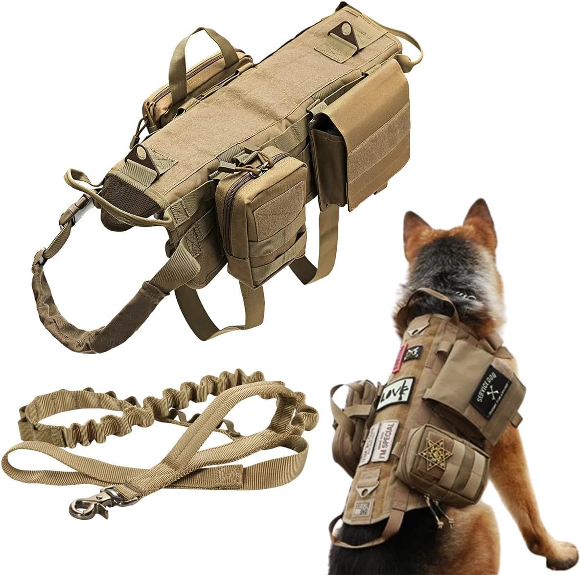- 【A GREAT SAVING】This dog harness comes with 3 molle pouches(1 Molle Waist Bag, 1 Molle Utility Pouch, 1 Molle First Aid Bag) and 1 Bungee Dog Leash.
