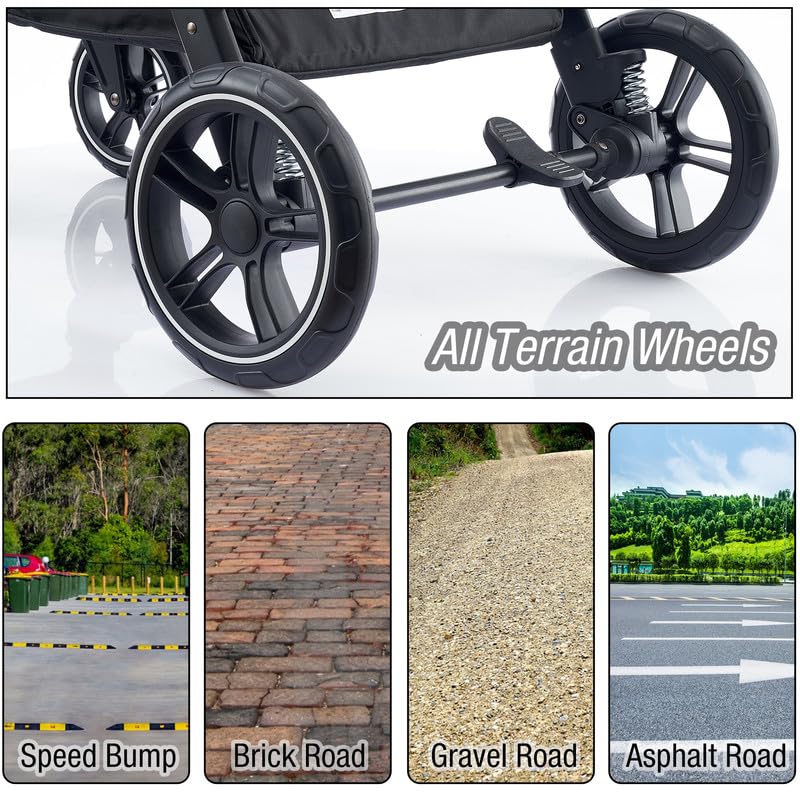 360-degree rotation front wheel provides improved maneuverability, responsiveness, and control, making it a valuable feature for pet owners who want to ensure a comfortable and convenient experience for both themselves and their pets during outdoor adventures
