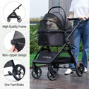 - Smooth Ride: Enjoy smooth and effortless strolls with our pet stroller's reliable performance. The large, sturdy wheels provide stability and easy maneuverability, making it suitable for various terrains, from sidewalks to park paths. For added convenience, we've included brakes to keep the stroller securely in place when you need to make a stop. The ergonomic handlebar ensures a comfortable grip and seamless control, so you can focus on creating unforgettable moments with your beloved pet.