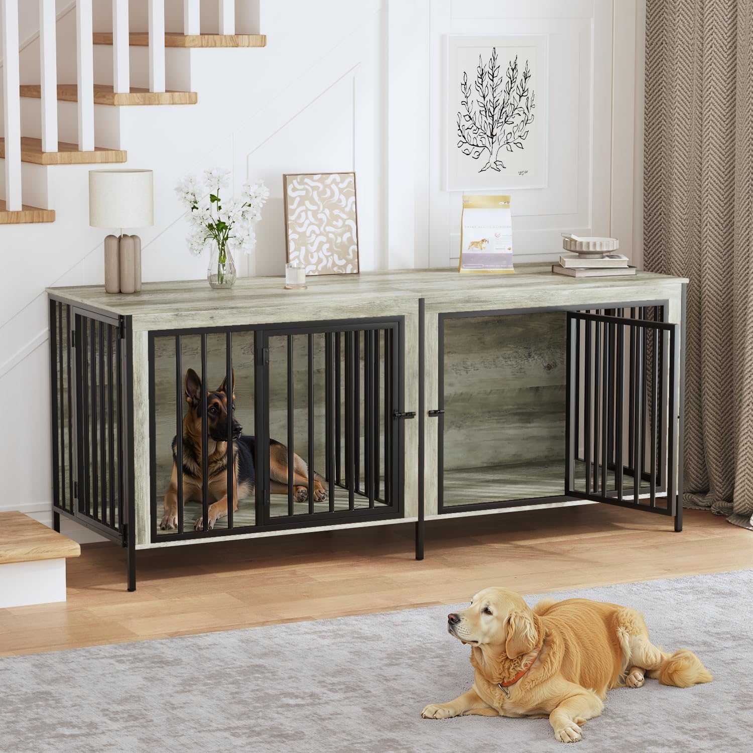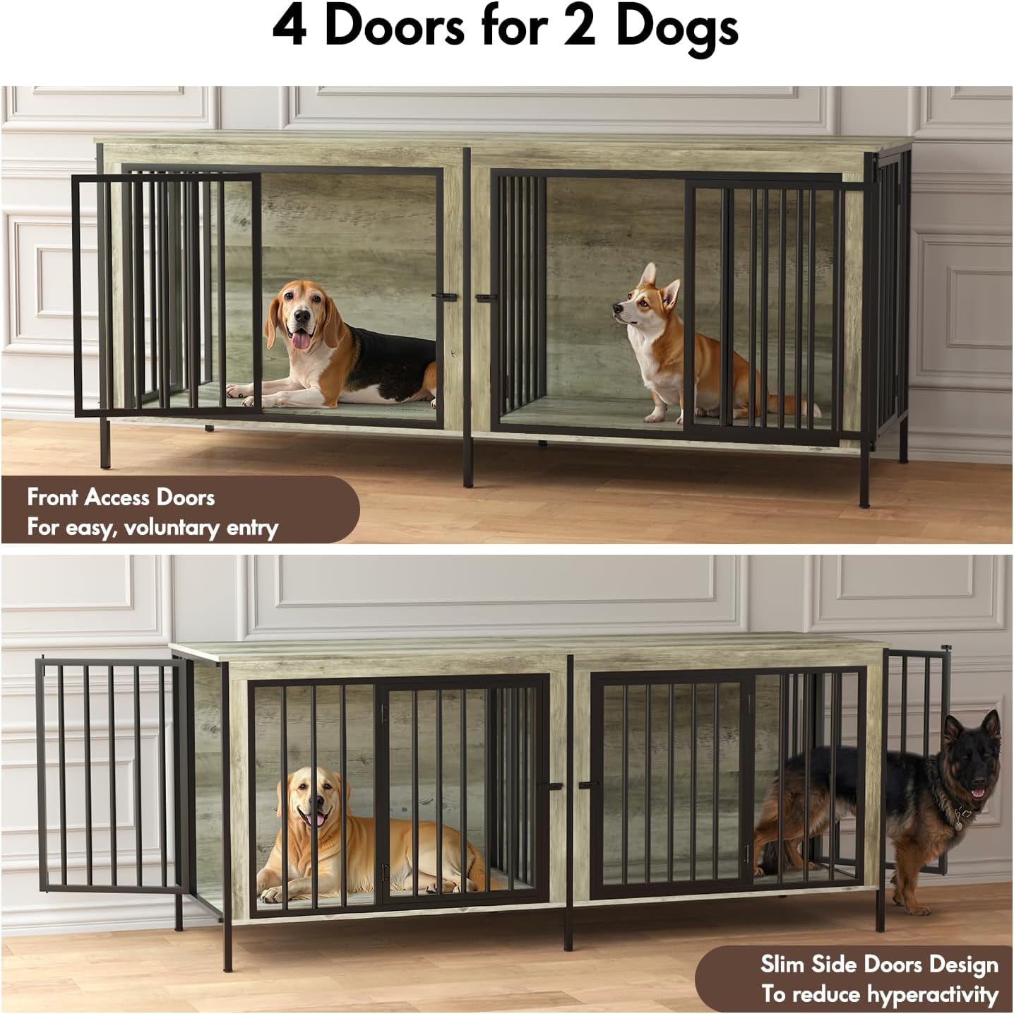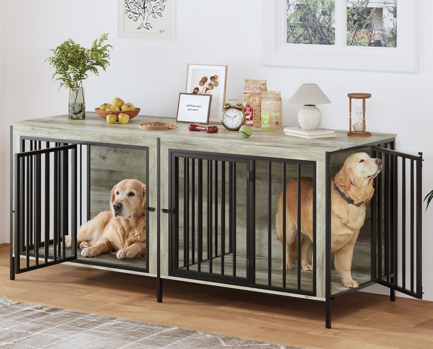 - Double Dog Crates Furniture for Two Pets – Designed with two separate spaces, this double dog crates furniture features a fixed divider to ensure that each of your dogs has their own private area. It’s ideal for homes with two pets, giving them both comfort and security.
