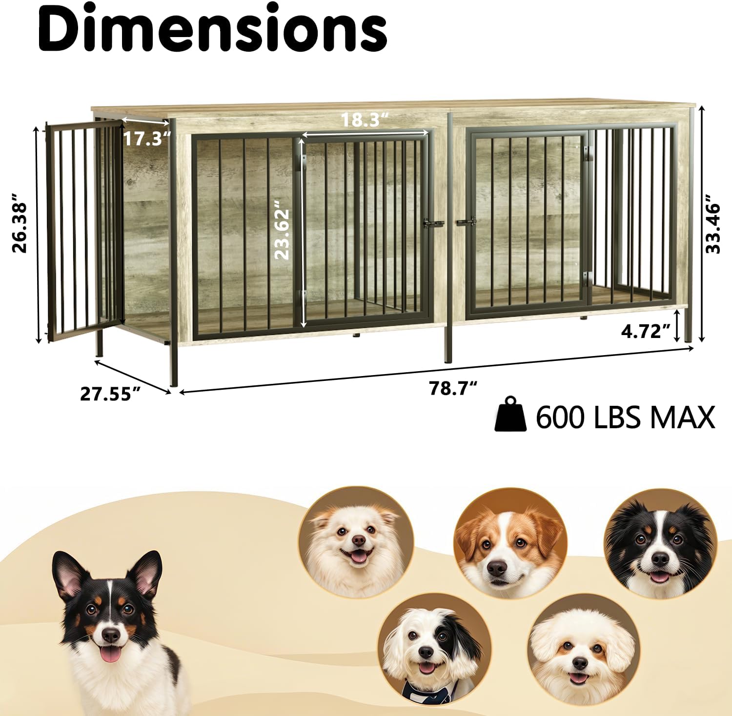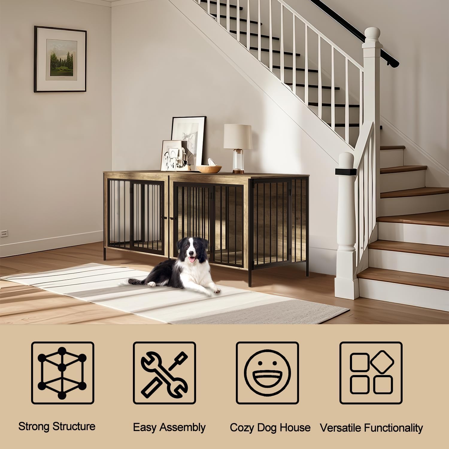 - Premium Dog Crate Furniture – This 78-inch dog crate furniture is not only a practical solution for your pets but also adds elegance to your home. With its spacious design, it provides a safe and comfortable space for your dogs, while seamlessly blending in with your home decor.
