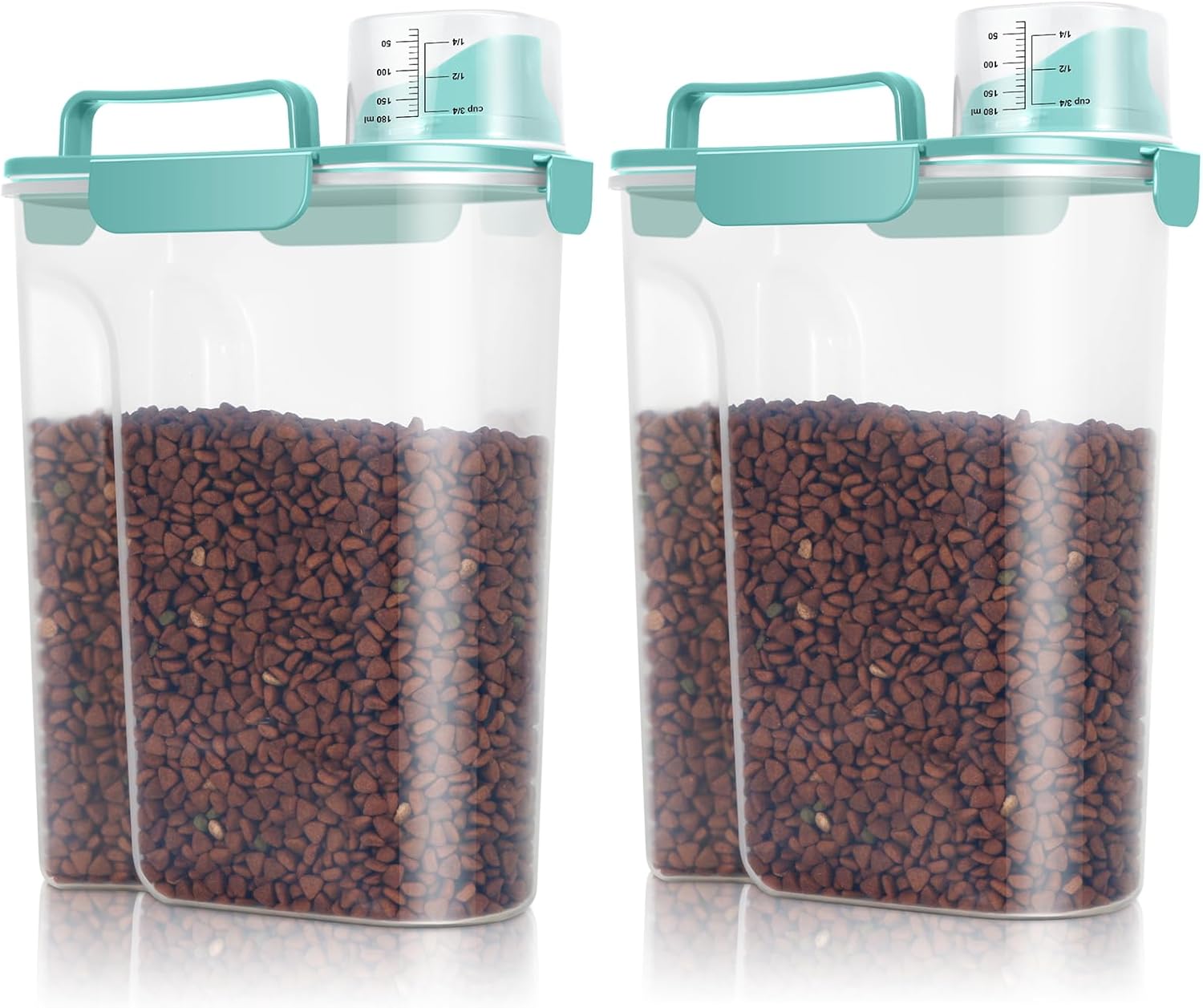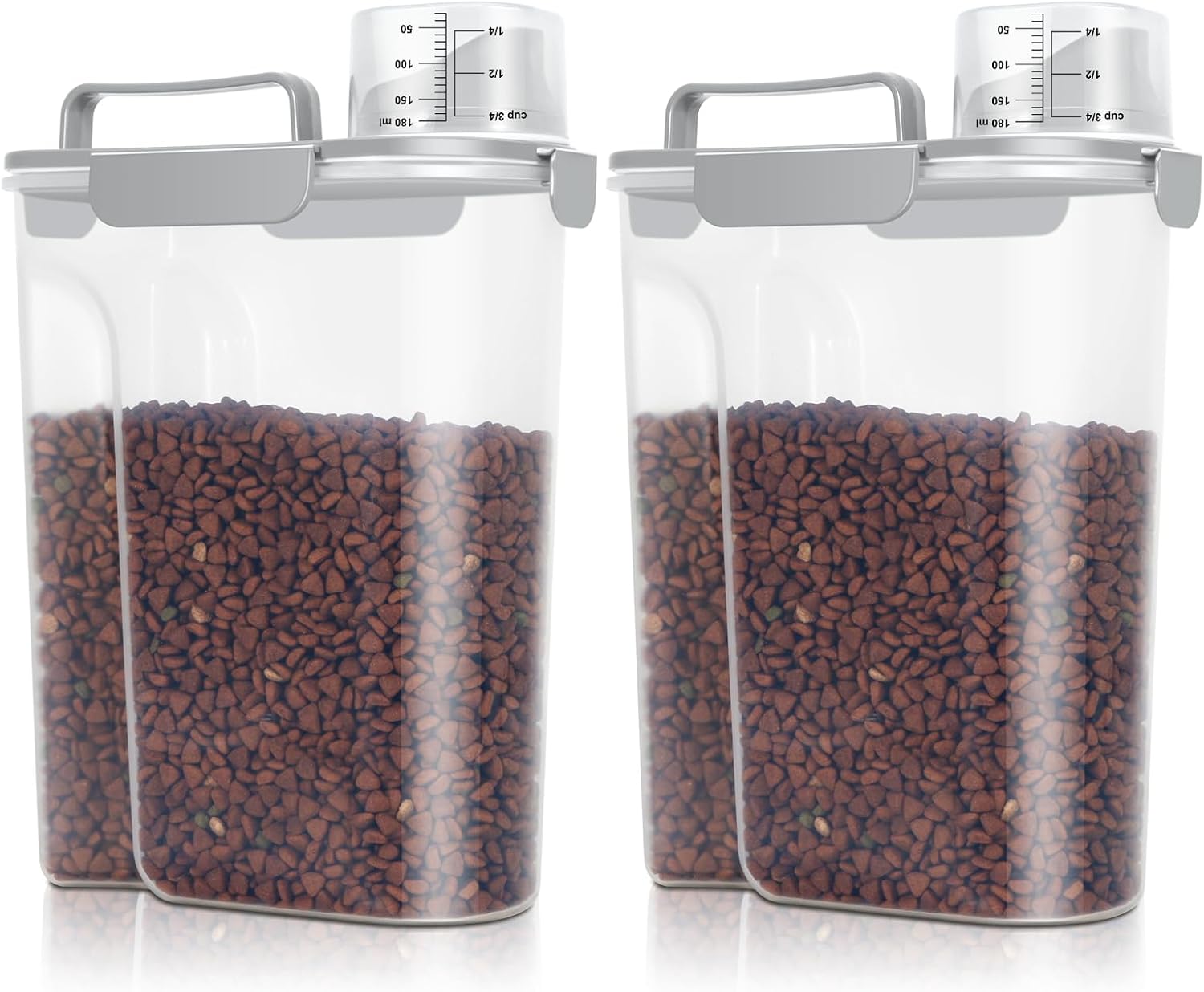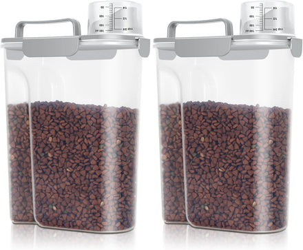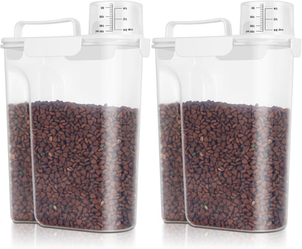 - Airtight Cat Food Container: With the snap-lock latches and silicone gaskets, the cat food storage container can shut tightly to ensure pet food stay super fresh. You dog or cat won't open the container and make a mess any more