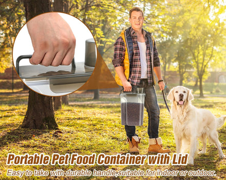 - Practical Dog Food Bin For Indoors/Outdoors: The pet food storage container also features a handle on top , so you can easily transport the food from shelves to your dog bowls, even when the container is full
