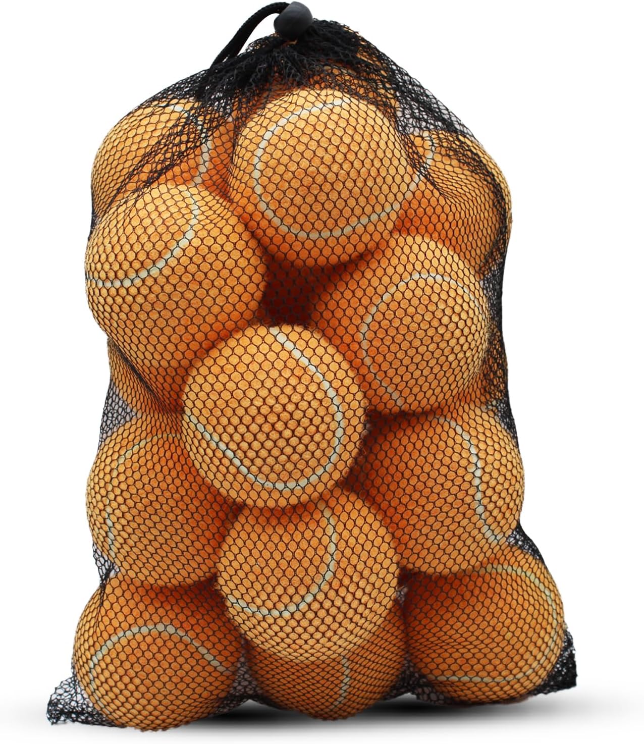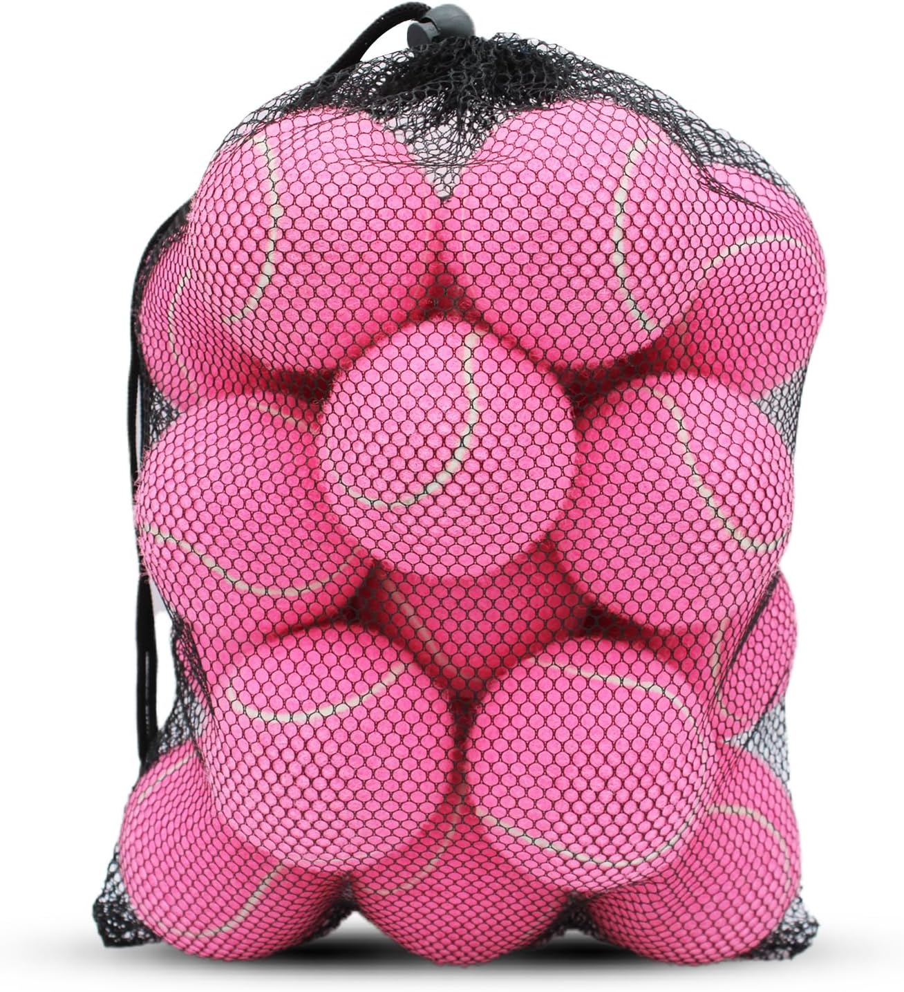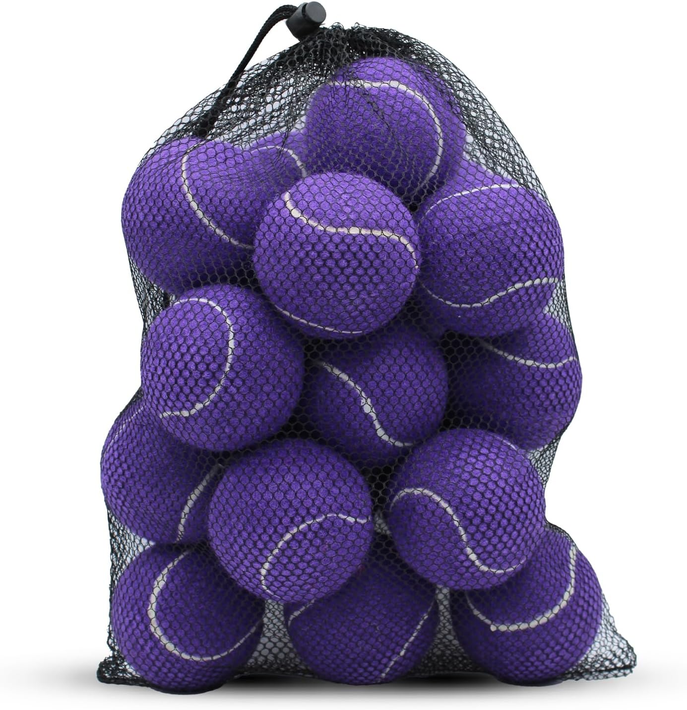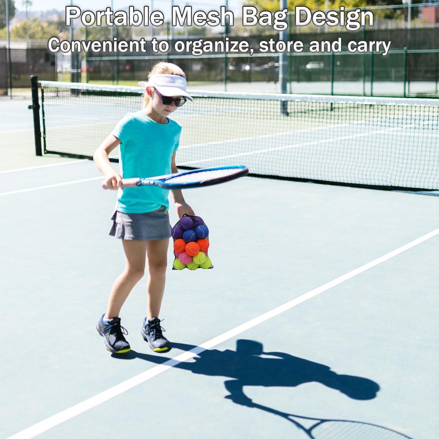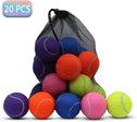 - 【Value Package】You will get 20 pcs tennis ball and comes with a reusable mesh bag.Easy transport and storage.10 different prevalent colours for your choice ,make your pet enjoying catching and running.
