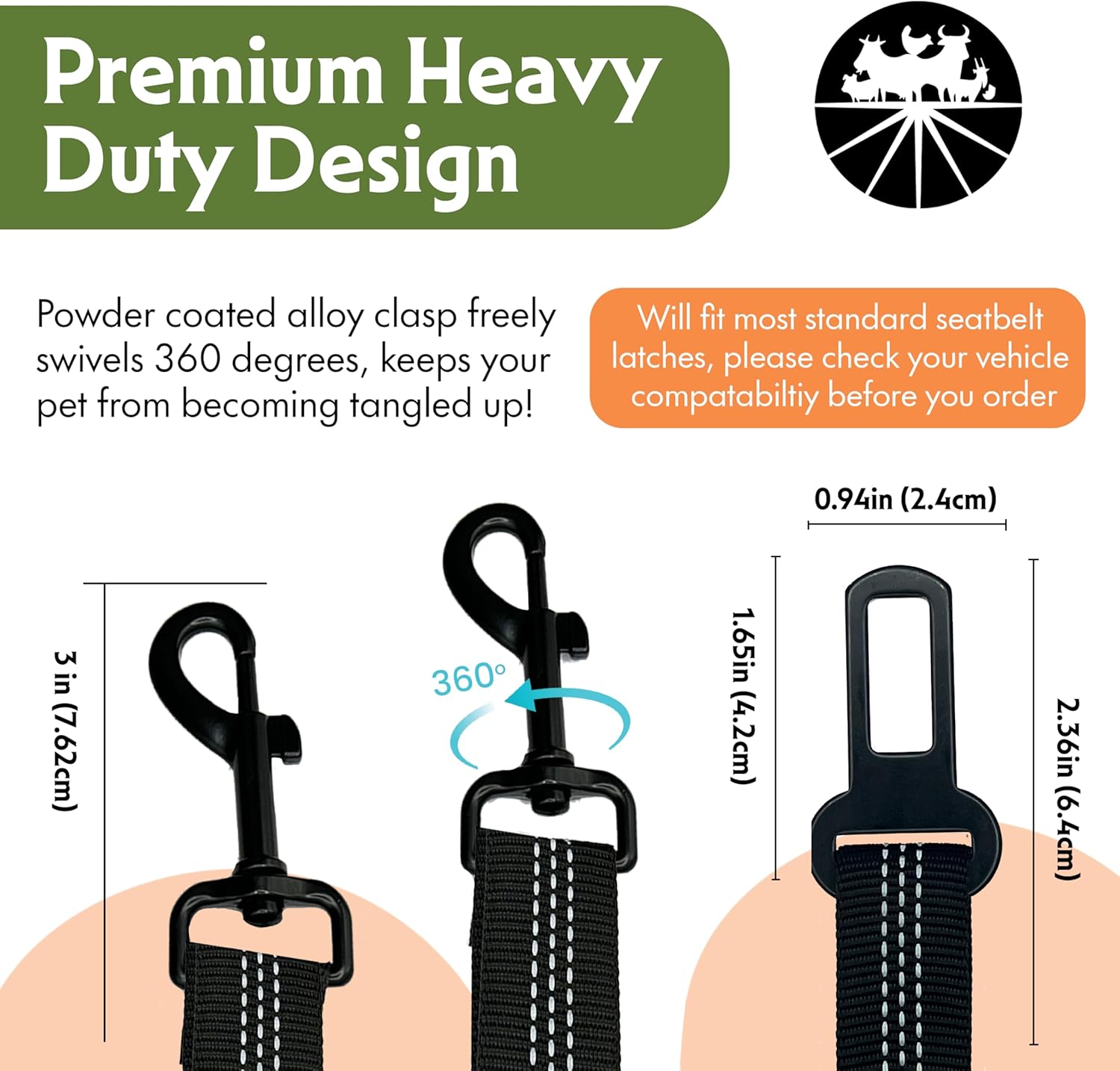 - [HEAVY DUTY & DURABLE] Our dog seatbelts are constructed out of sturdy nylon fabric with easy to see reflective stripes, premium powder coated Aviation Aluminum with max force tension of 850+ lbs, Automotive Buckle, 360 degree clasp