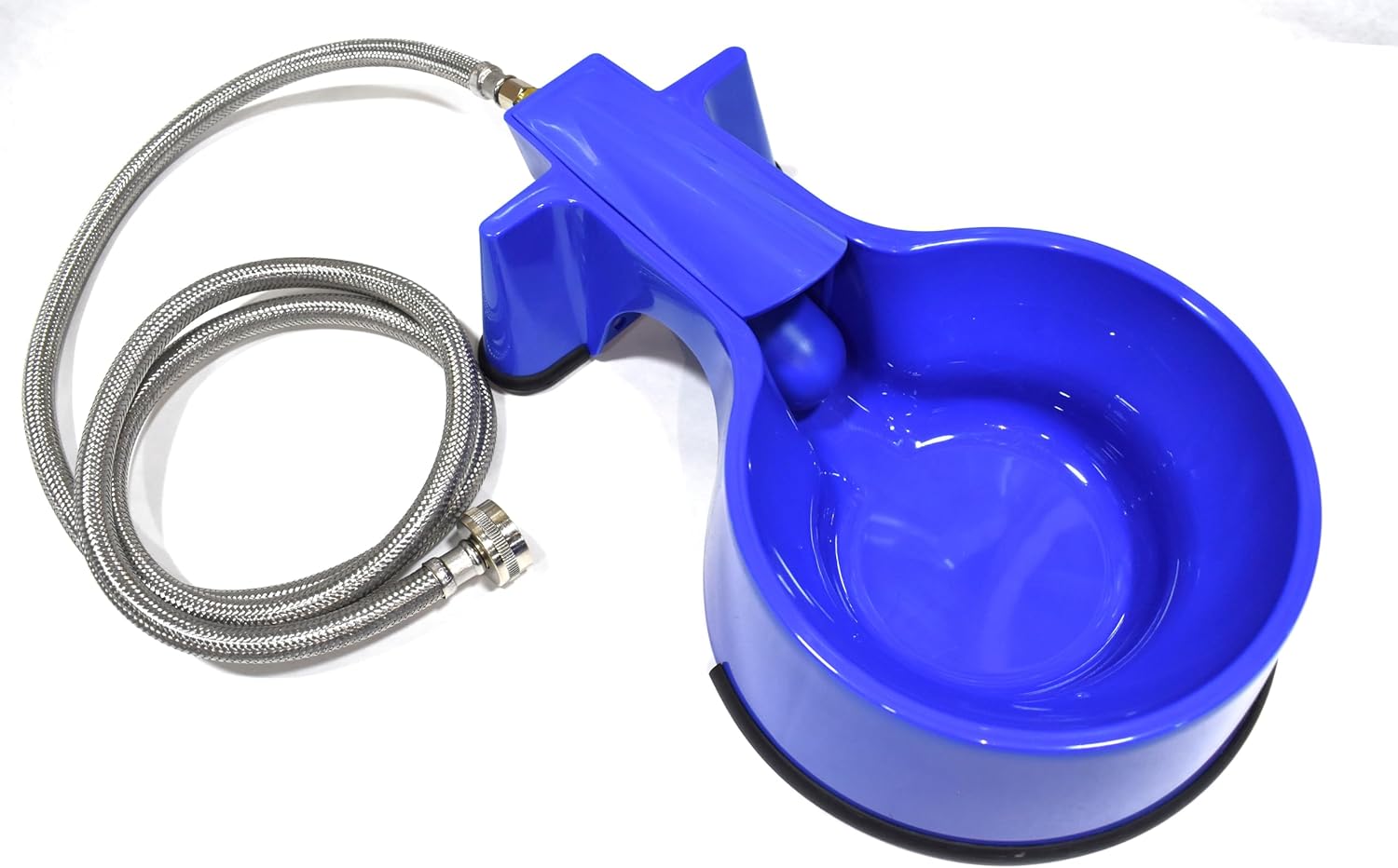 The Easy-Clean Auto-Fill Water Bowl For Dog with (5-Foot) Long Stainless Steel Hose, 32 ounces,Blue