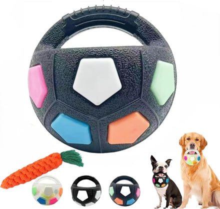 - [Easy-Grip Kettlebell Design] Our Mellow Dog Calming Ball with Handle is shaped like a football and features a sturdy, round handle for easy portability. It's perfect for playing fetch and tug-of-war with your pet. It's designed for energetic dogs who enjoy interactive play and chewing enthusiasts, making it both fun and safe.