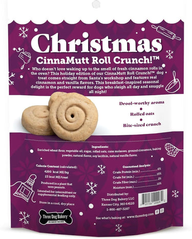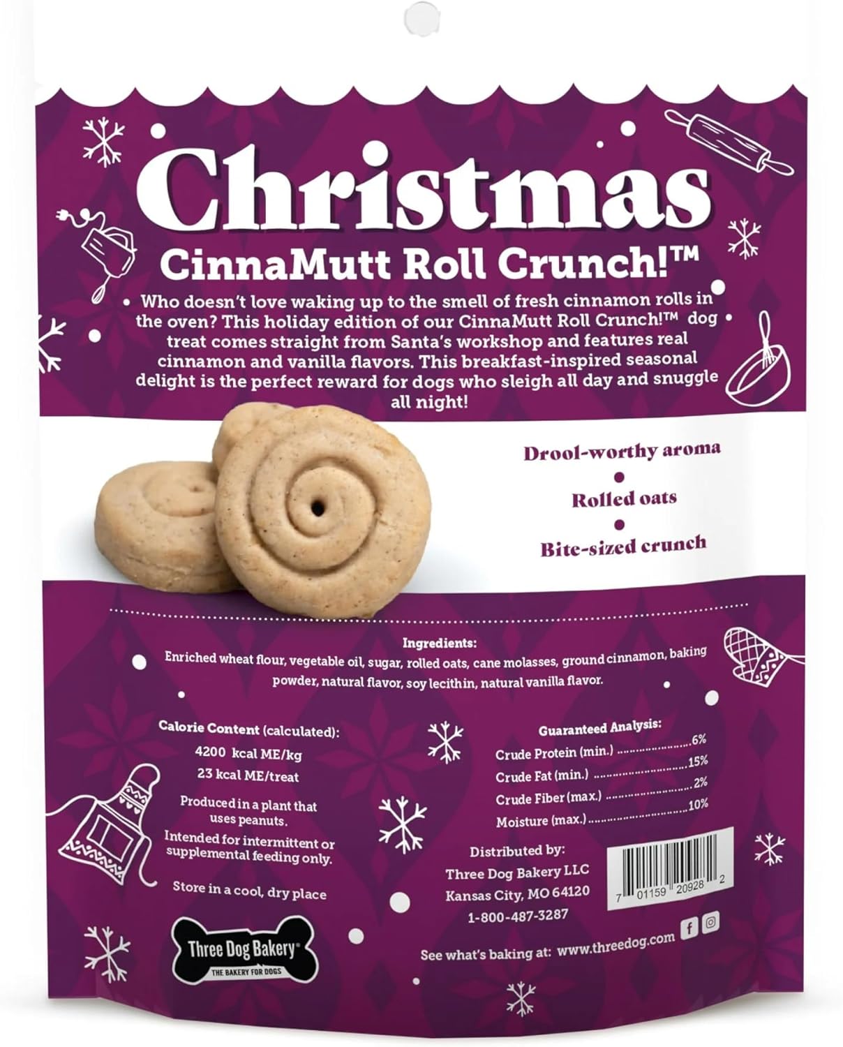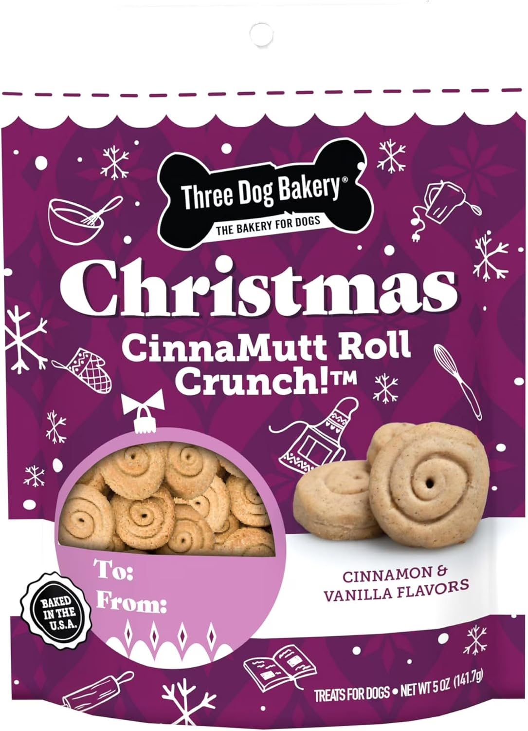 Three Dog Bakery CinnaMutt Roll Crunch, 5 oz Festive Dog Bones, Holiday & Christmas Dog Training Treats, Puppy Training Rewards