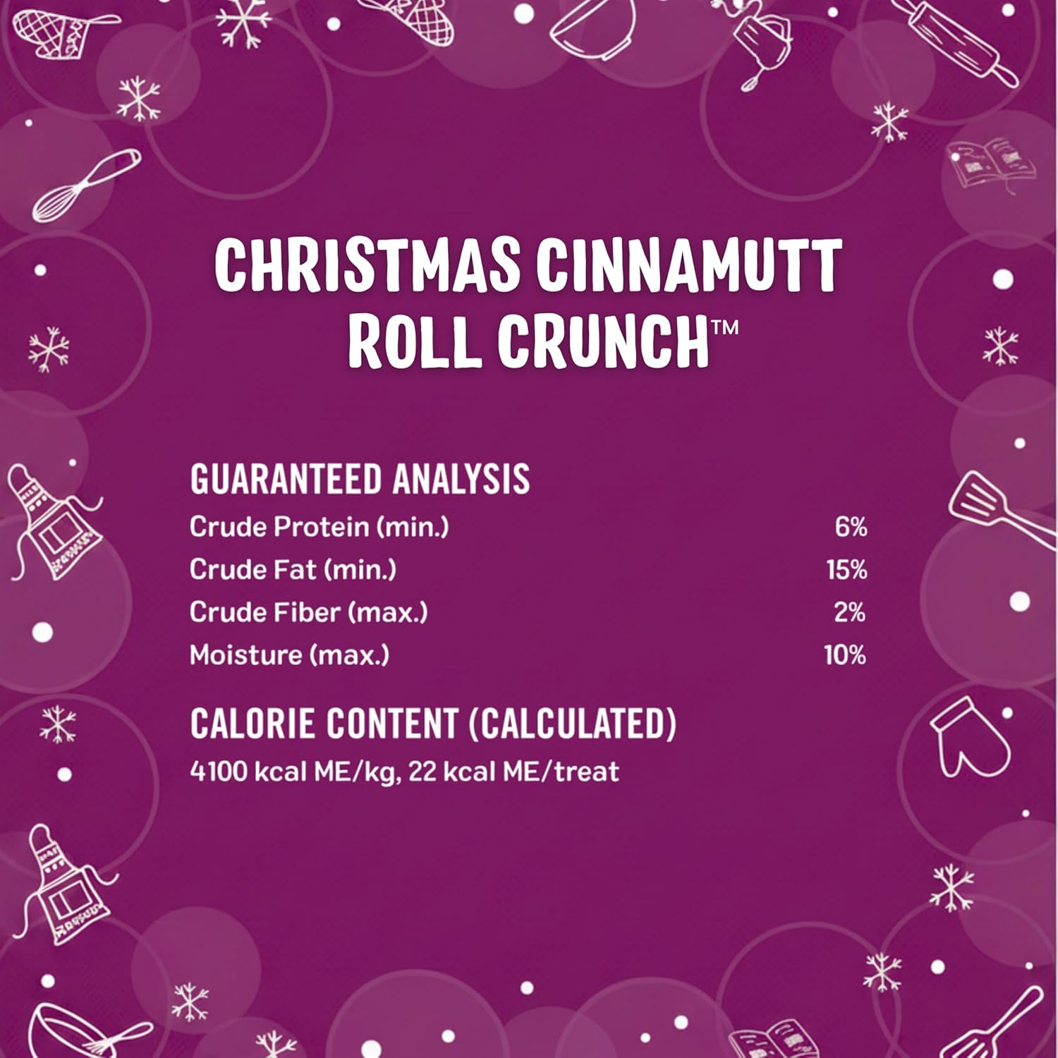 Surprise your favorite four-legged friend with a taste of holiday cheer! These festive treats are inspired by classic cinnamon rolls, giving your pup a delightful blend of cinnamon and vanilla flavors. Baked with love, CinnaMutt Roll Crunch! is a wholesome snack that'll have your dog's tail wagging with joy. Share the magic of the season with your pup-shaped family member.