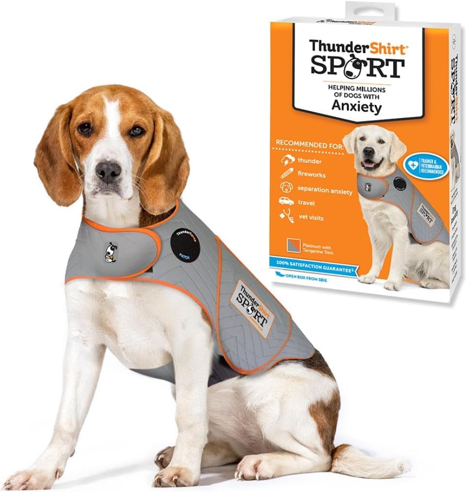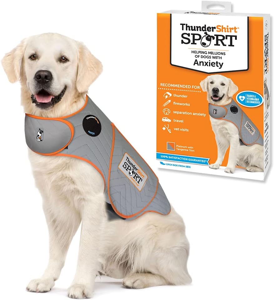 The ThunderShirt SPORT effectively treats anxiety, fear, and over-excitement in style. Designed for comfort, the breathable jacket features washable, durable fabric, with contrasting trim and reflective logos for safer nighttime walks. ThunderShirt has the best patented pressure wrap design available. Like swaddling an infant, ThunderShirt is scientifically proven effective to calm anxiety, fear, and over-excitement. Easy to use, ThunderShirt is adjustable for just the right pressure to calm your dog. Already calming millions of dogs, ThunderShirt has over an 80% success rate. Use for thunder, fireworks, separation anxiety, travel, vet visits, problem barking, reactivity, and much, much more. Great for rescue dogs. NO TRAINING REQUIRED. COMFORTABLE FIT FOR YOUR DOG. Made of machine washable, soft, breathable fabric. return it for a refund of your purchase price.