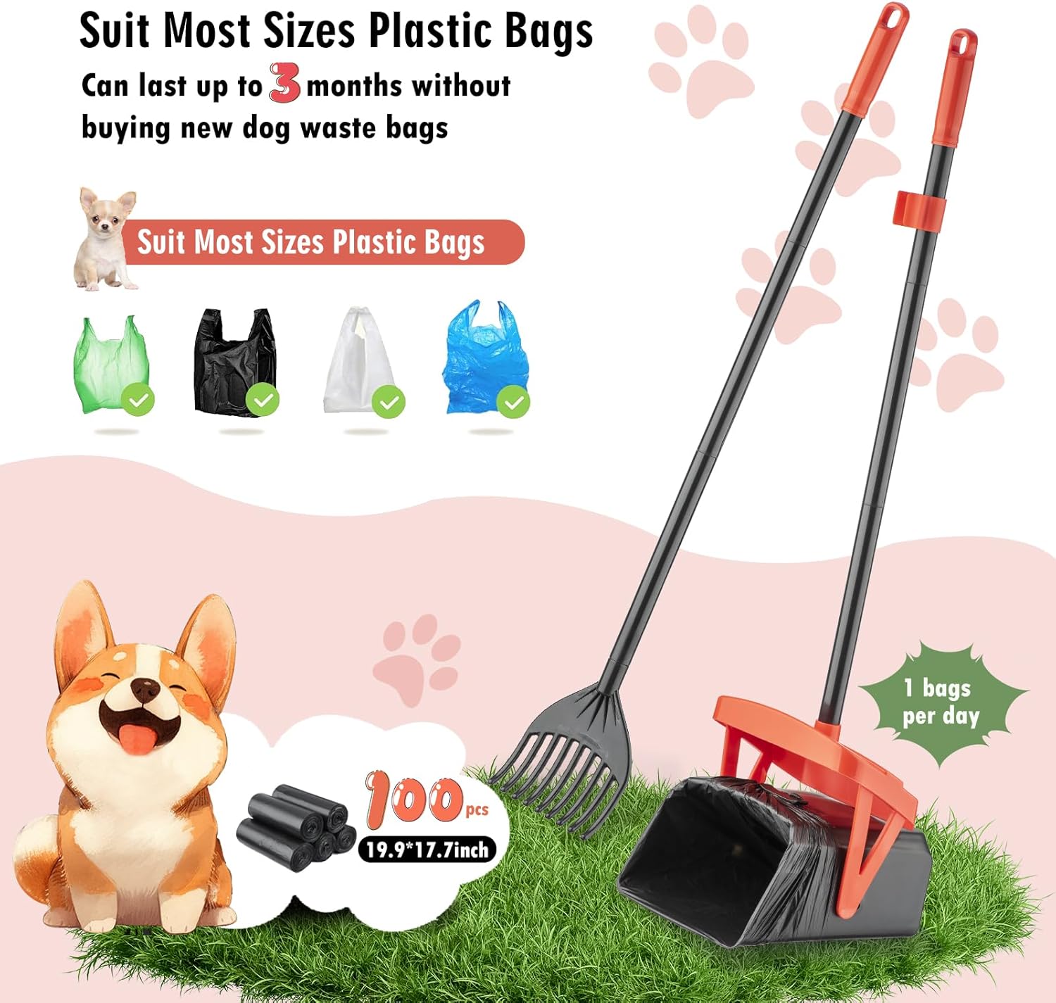 - Comes with 100 Dog Poop Bags: Poop Scoopers set with thick& large, easy-to-install Dog Poop Bags. Dog Poop Picker and bag attachment feature reduces the frequency of bag replacement, to save you money— can last up to 3 months without buying new dog waste bags. A more Eco-Friendly solution!