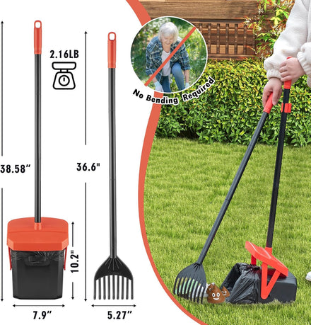 - No Bending Required: Long-handled Dog Scooper, a 36" and lightweight plastic design, perfect for seniors, kids, and pregnant to increase activity safely. Independently use Poop Grabber without bending, making you and your family comfortable to clean up Pets Poop and strain-free.