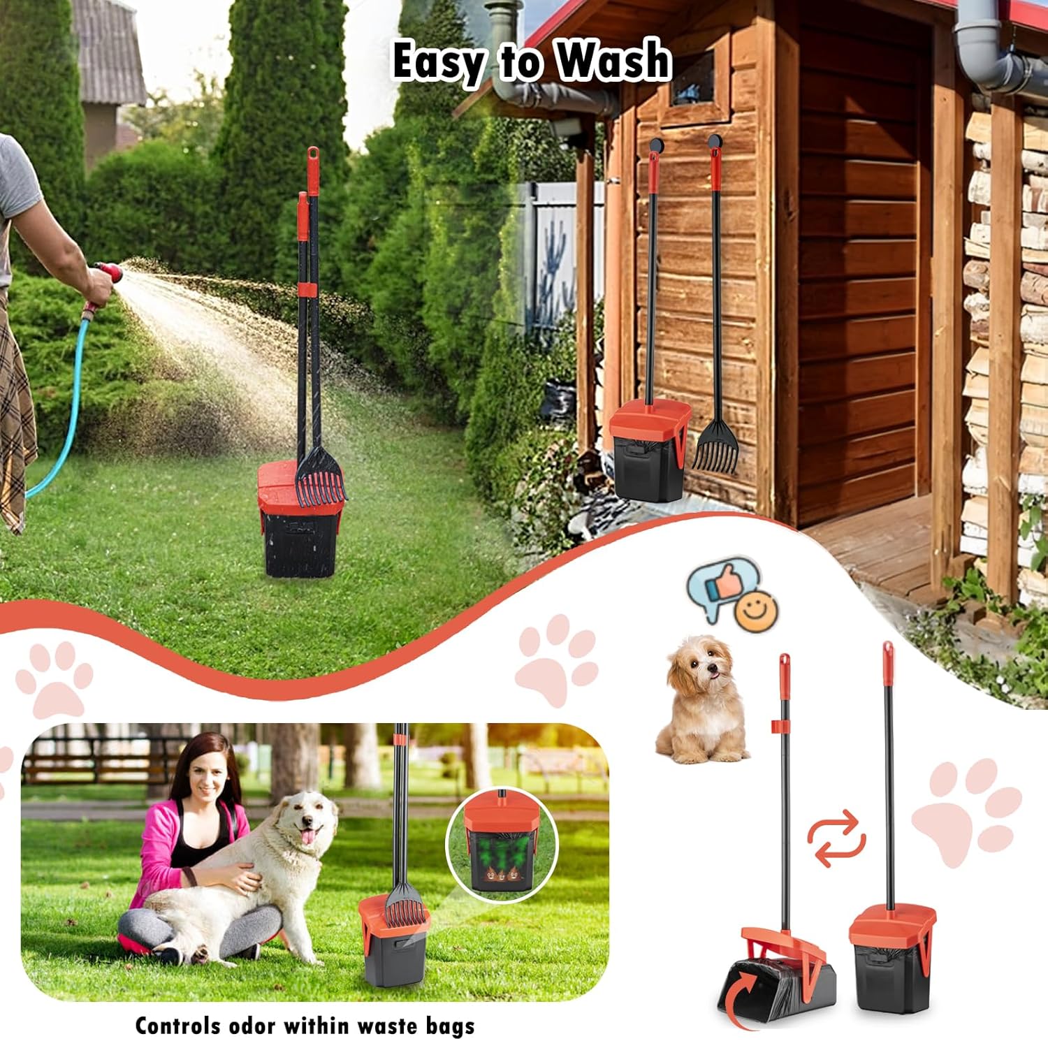 - Easy to Clean: TIMINGILA Dog Pooper Scooper is designed for quick and effective pet waste cleanup. Dog Poop Scoop just rinse with water to be hassle-free and clean. The specially designed anti-odor lid controls odor within waste bags and keeps indoor air fresh.
