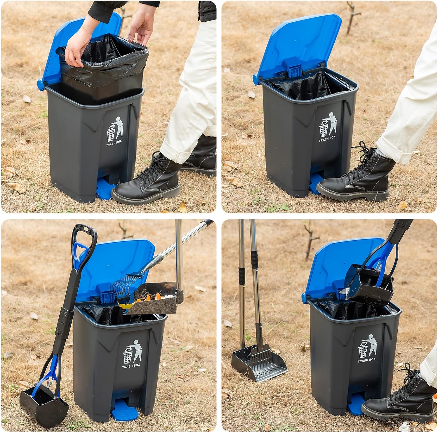 Cleaning up poop is an inevitable part of dog ownership. Whether in your own yard or on a walk, you know that if you own a dog, you’ll be stooping and scooping at regular intervals. If you're not keen on the idea of using a plastic bag and your hand to pick up after your pet, a dog pooper scooper can be an excellent tool to use. TIMINGILA poop Bin Rake & Tray is designed to simplify all aspects of pet waste pick-up, reducing odor, eliminating mess, and maximizing comfort and control. The length of 36.6 inches allows you to easily pick up poop without bending over during use.The Bin comes with a lid that keeps odors out and keeps water and bugs out.