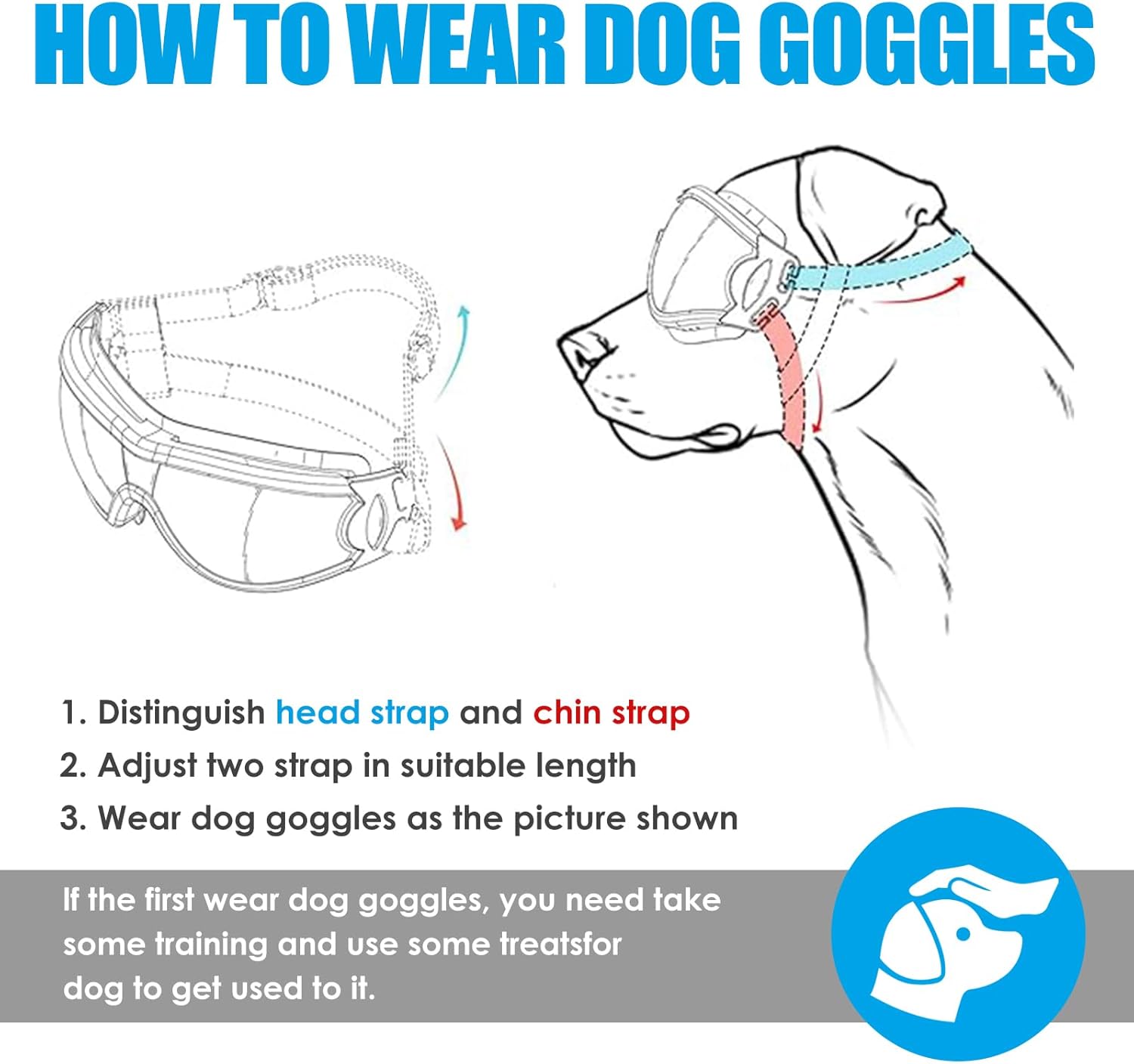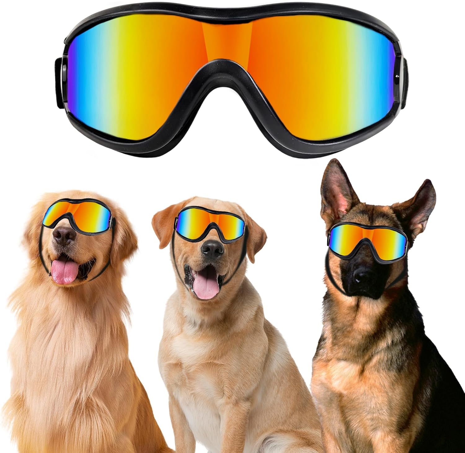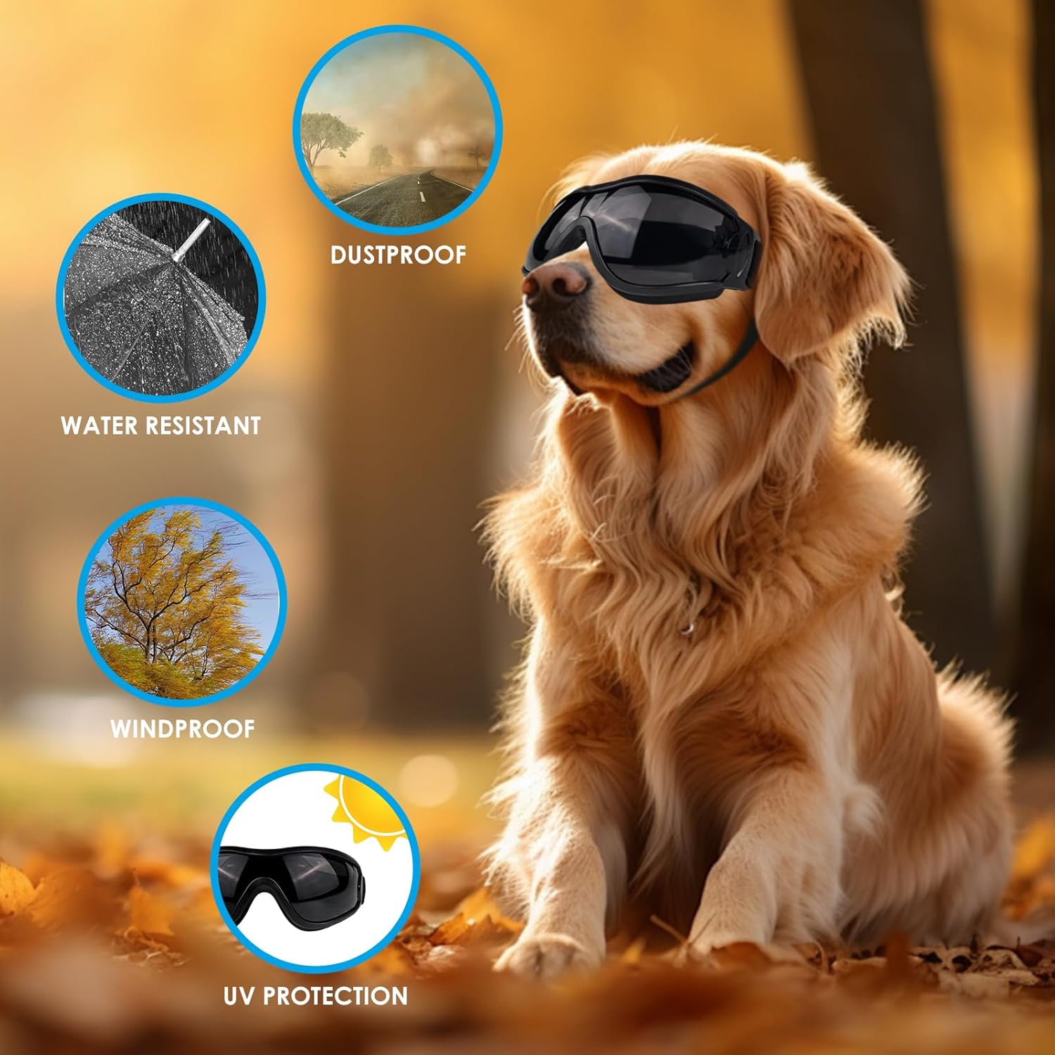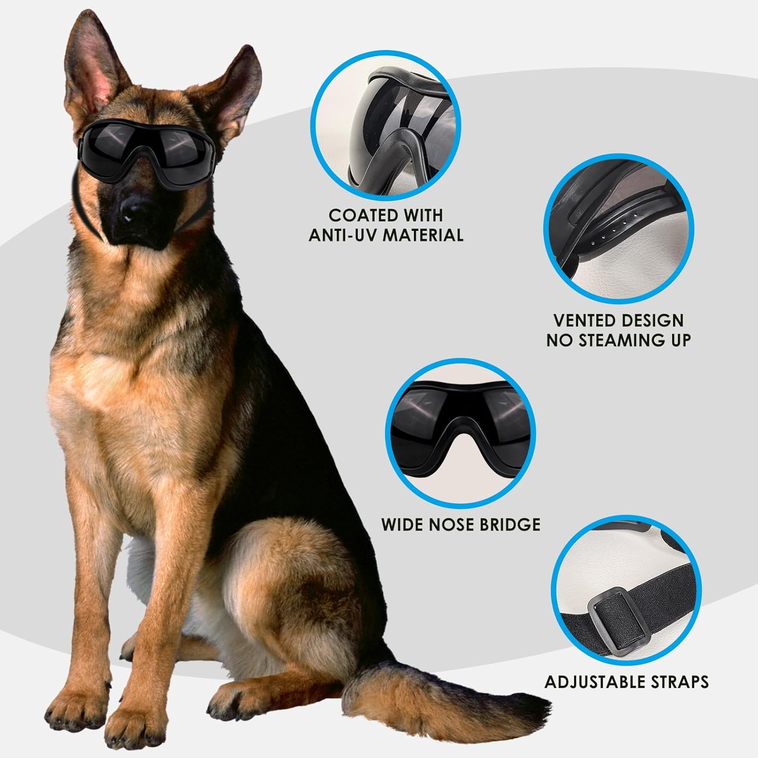 - [4-in-1 ULTIMATE EYES PROTECTION] - These dog goggles for large dogs feature UV400 lenses to 100% block harmful rays, windproof design to keep out dust, anti-fog coating to ensure clear vision, and scratch-resistant lenses to ensure durability. Perfect for medium and large dog breeds!