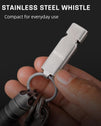 - High Quality Survival Whistles : Unique two-sound-chamber design of emergency whistle requires your light blow and then produces loud attention-grabbing sound up to about 130db, enough to call for help from a long distance and work great as signal whistle.