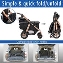 - MULTI-PET DESIGNS ★ Super spacious pet compartment, four interior tethers and front/rear entries can comfortably accommodate one to several pets up to 100Lbs. Accessory hooks allow additional pets to travel alongside this pet stroller SUV. Three organizer pockets, cup holder and large under-basket made traveling easy and tidy.