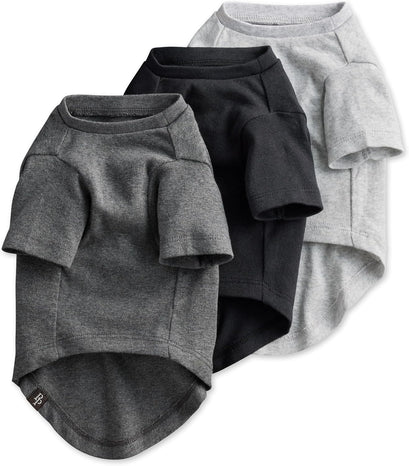 "A Clothes Encounter" 100% Organic Cotton Dog T-Shirt 3-Pack—a cozy and stylish wardrobe essential for your furry friend! Crafted from high-quality 100% organic cotton, certified by GOTS, these tees offer premium comfort for daily wear. Breathable and soft, they keep your fur baby snug from dawn till dusk. Plus, with their easy-to-use neckline design, putting them on and taking them off is a breeze. The perfectly placed leash opening adds convenience and style to your walks or runs. Available in a convenient 3-pack of fun prints and colors, there's a tee for every mood and occasion. And with sizes ranging from XXS to XL, they're suitable for small to large dogs alike. Treat your pup to the ultimate in comfort and style with our Organic Cotton Dog T-Shirt 3-Pack—it's a wardrobe must-have for every canine companion! SIZE GUIDE: XX-Small: up to 9" (Neck), up to 12" (Chest) X-Small: 9"-12" (Neck), 12"-15" (Chest) Small: 11"-14" (Neck), 15"-19" (Chest) Medium: 13"-16" (Neck), 19"-22" (Chest) Large: 15"-18" (Neck), 22"-26" (Chest) X-Large: 18"-22" (Neck), 26"-30" (Chest) XX-Large: 22"-26" (Neck), 30"-34" (Chest)