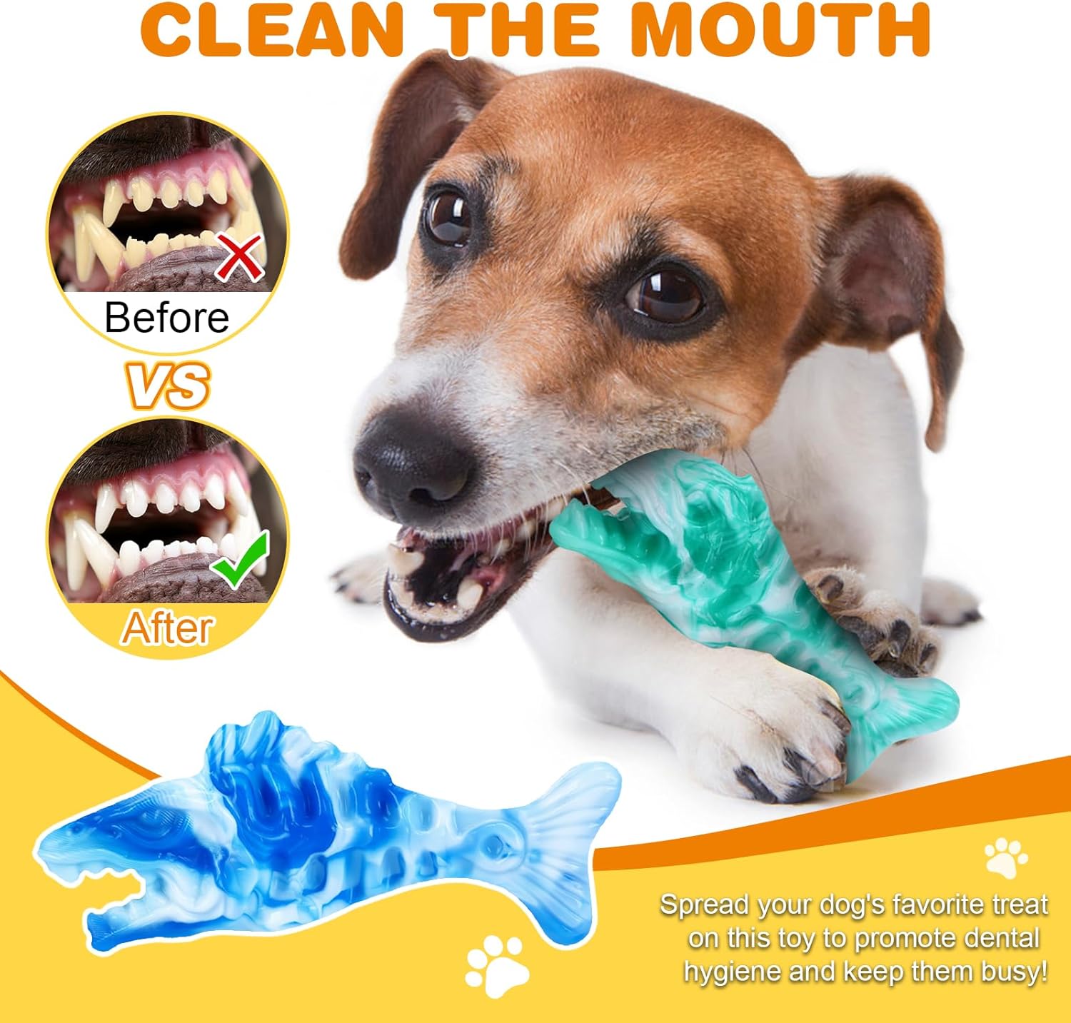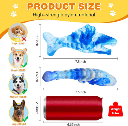 - 【Sturdy & Chew-Resistant】Our dog toys for aggressive chewers are crafted from high-strength nylon with a fish-shaped design that instantly grabs attention. These tough dog toys are ideal chew toys for dogs, satisfying natural gnawing urges while protecting your sofa, pillows, shoes, and more. Perfect as durable dog toys for daily play