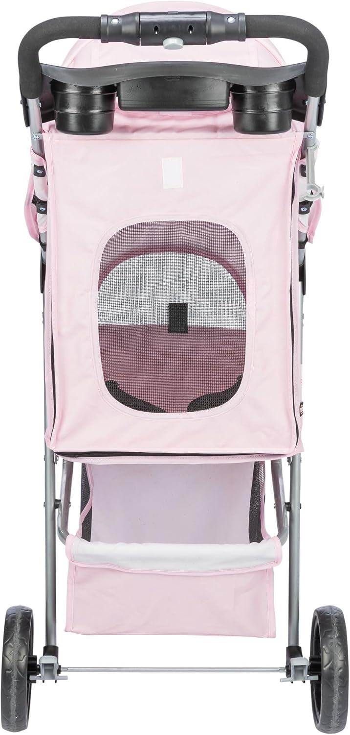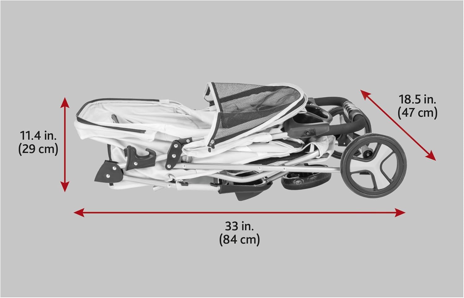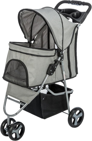 Why walk when you can ride in style with the TRIXIE Pet Stroller. Your companion will enjoy a safe and comfortable ride while out on long walks, shopping, or running errands. The 360-degree front swivel wheel allows for tight maneuverability and the rear wheel brakes ensure the stroller will not move when parked. The fully zippered canopy keeps your pet secure while providing shade. The durable mesh covered windows allow for fresh air ventilation and great visibility. Additional cabin features include 2 short, tethered leashes so your little guy will not escape, and a removable cushion provides extra comfort. The one-hand quick-release folding system will allow for a hassle-free set-up and take down. The stroller will flatten down quickly for compact storage and easy travel. No matter where you go, your forever friend can travel in style and comfort, enjoying fresh air, invigorating smells, and interesting sights – right by your side every step of the way.