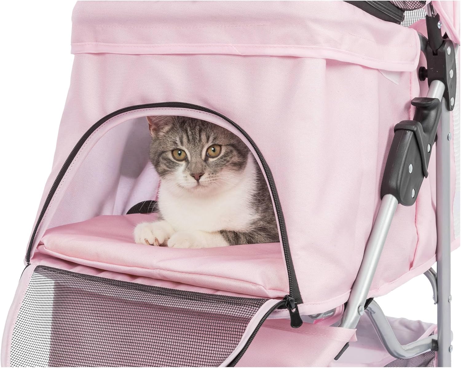 - Your dogs and cats are always safe with its rear parking brakes and 2 safety tethers inside the pet compartment