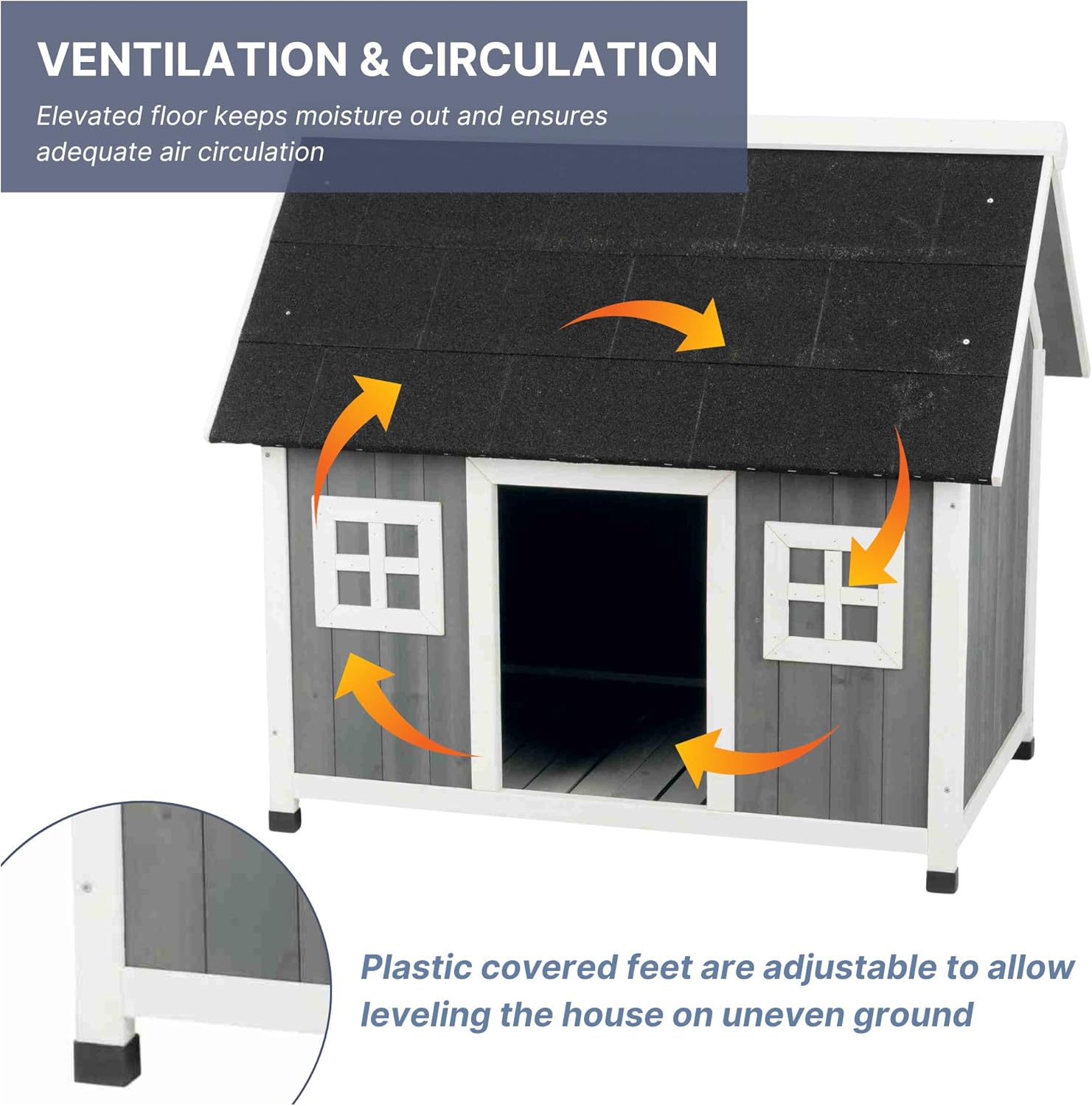 - DURABLE: The outdoor dog house consists of a strong & sturdy pine construction. Heavy-duty mineral roofing felt and a weatherproof sealer provide ultimate protection for long-term outdoor use