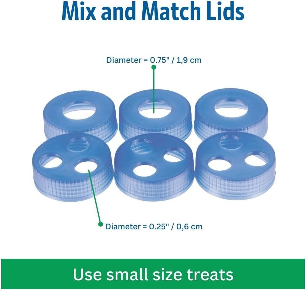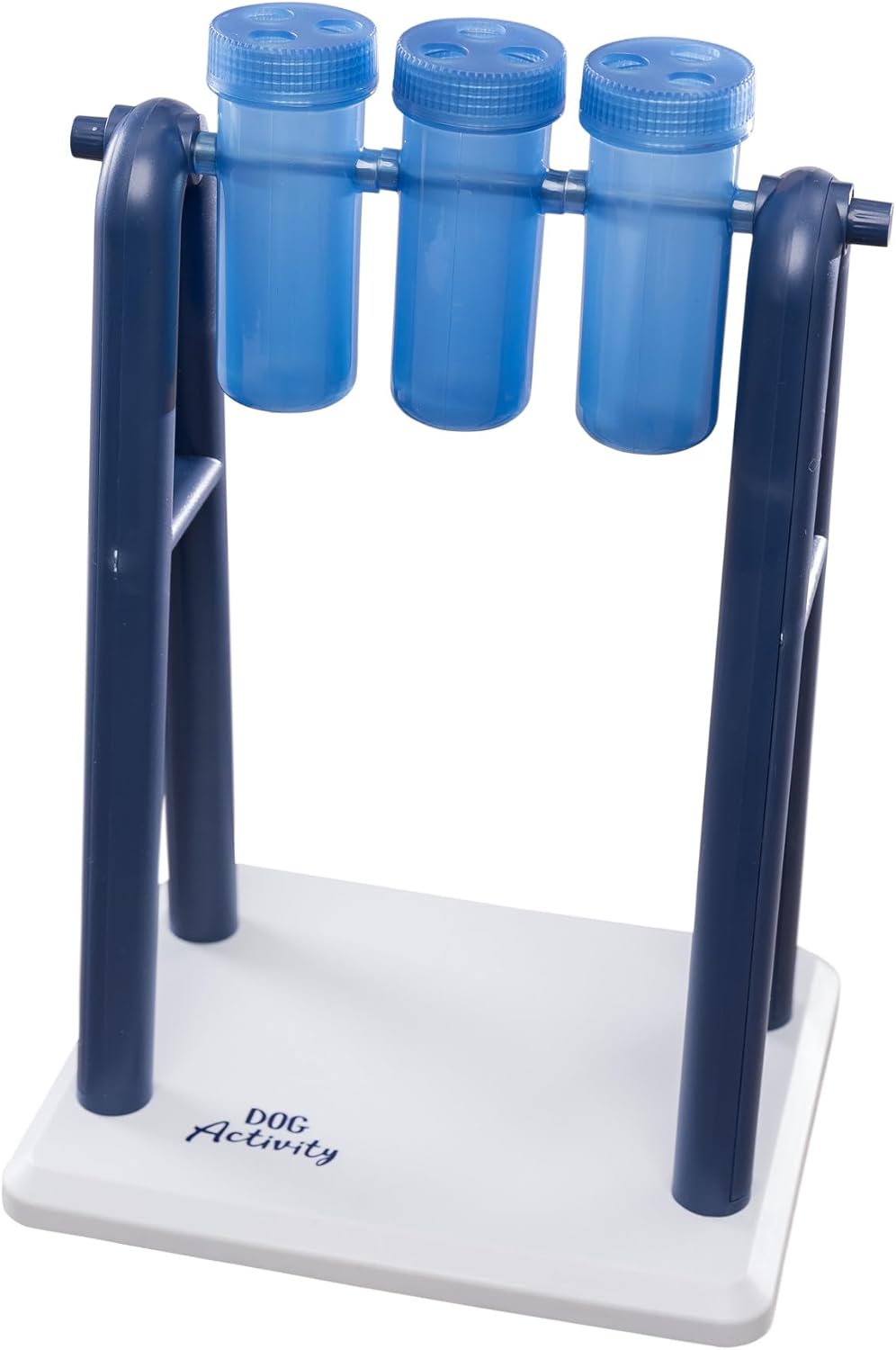 - ENRICHMENT FUN: This interactive dog treat puzzle has three rotating tubes to fill with small-size treats; your dog will need to rotate and balance for treats to come out; 2 sets of lids are included so you can mix and match to increase the difficulty