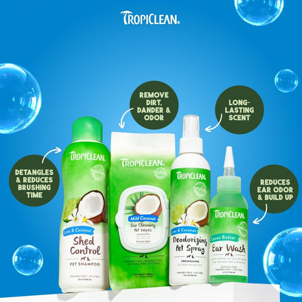 TropiClean is an all-natural line of products. All the ingredients used are derived of natural plant and fruit extracts.