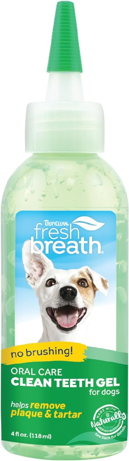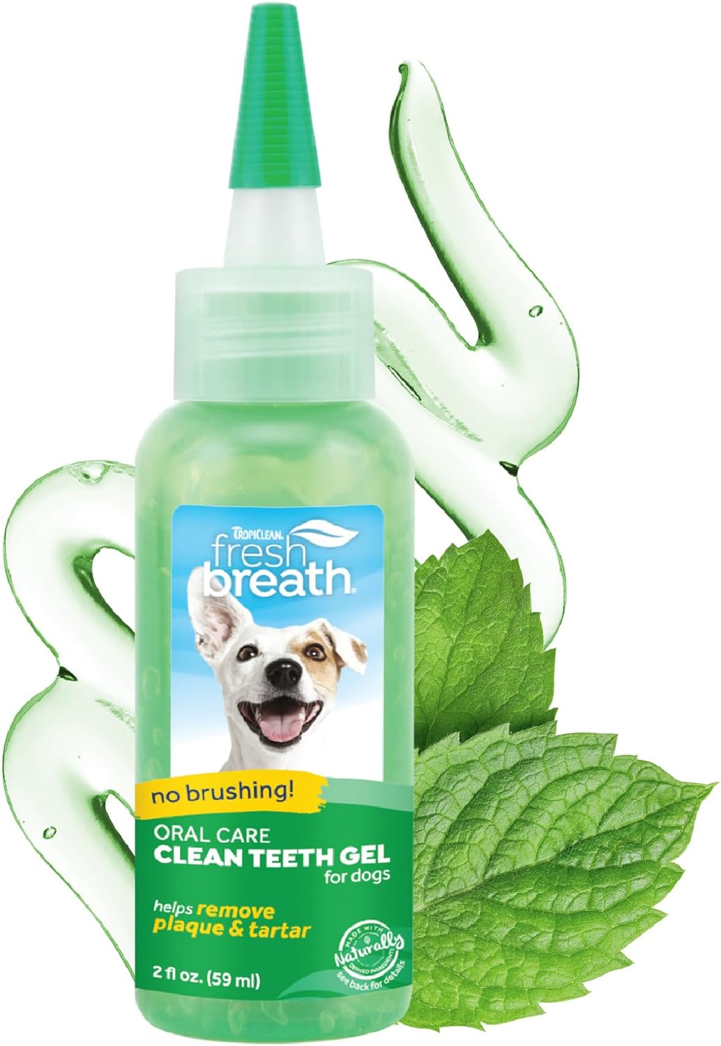 TropiClean Fresh Breath Dog Toothpaste for Teeth Cleaning, Breath Freshener, Easy Plaque & Tartar Remover Gel, No Toothbrush Needed, Peanut Butter, 2oz.