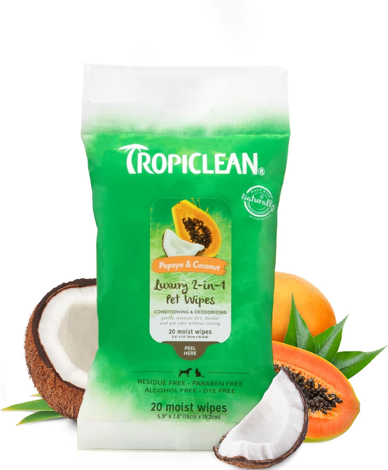 - ON-THE-GO WIPES – Fragrance-free TropiClean hypoallergenic pet wipes provide a quick and easy clean-up for the face, paws, body and butt.