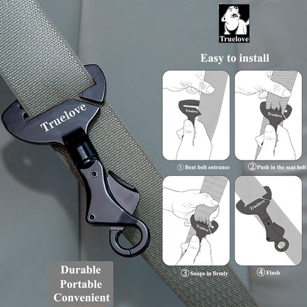 - Portable Seatbelt Lock: It is made of aluminum alloy, with lightweight, durable and top quality of construction. Portable and easy to store. This product has undergone rigorous pull and crash tests, earning recognition from numerous users. On average, out of 100 dog-owning households in the United States, 70 opt for the Truelove Dog Seat Belt Buckle.