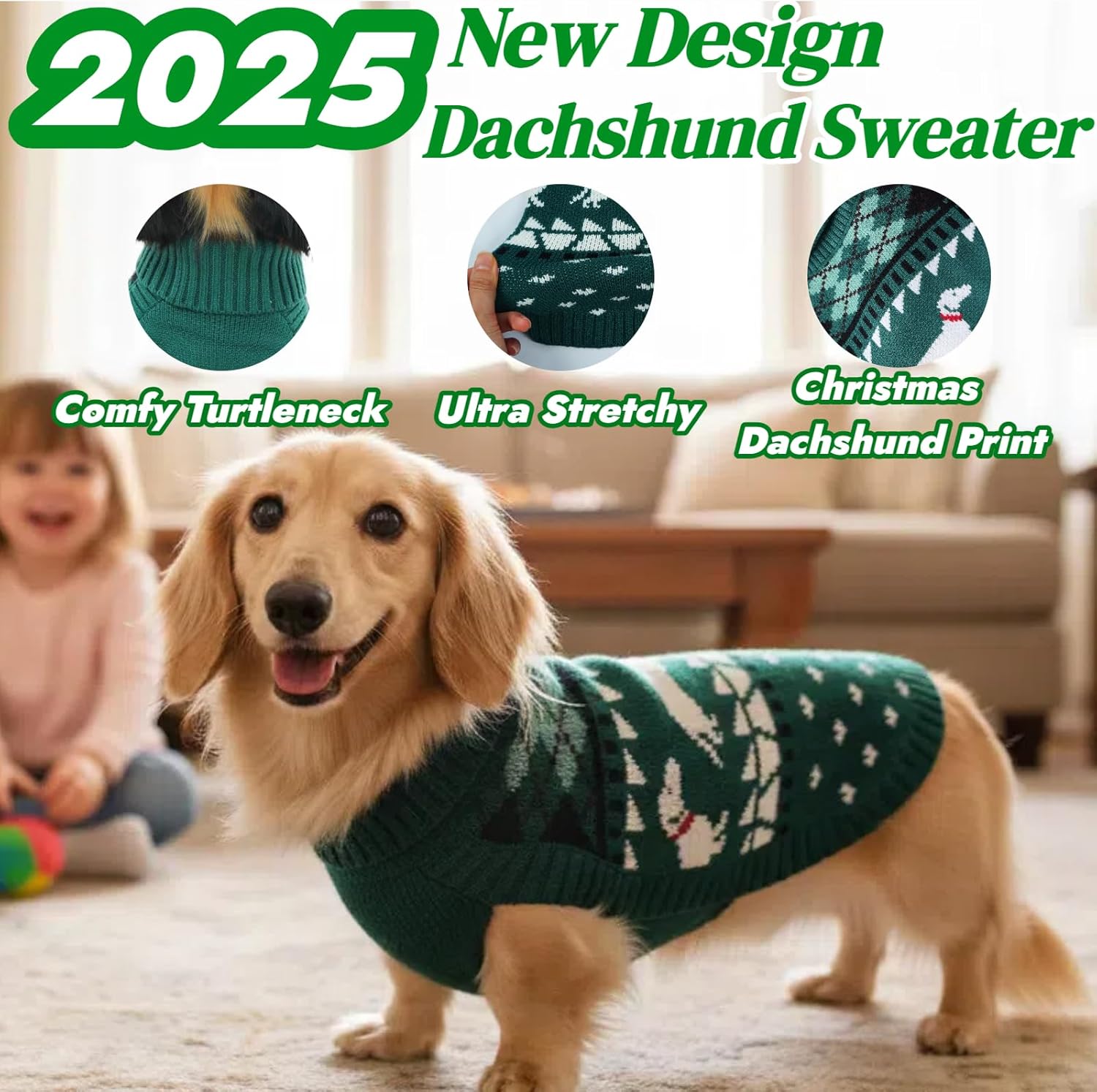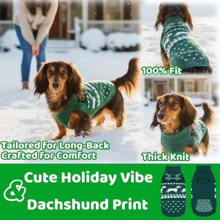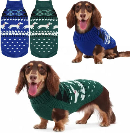 - 2025 Exclusive Upgrade Dachshunds Sweater: Specially tailored for long-back breeds, this Christmas turtleneck small dog sweater is a perfect holiday gift for your little sausage dog. Designed by T’CHAQUE’s professional team, every detail—from the festive patterns to the bright Blue and Green colors, it features three 3 highlights: a full-back fit tailored for Dachshund, a male-dog-friendly belly cut for hassle-free potty breaks, and a perfectly balanced turtleneck for warmth and style