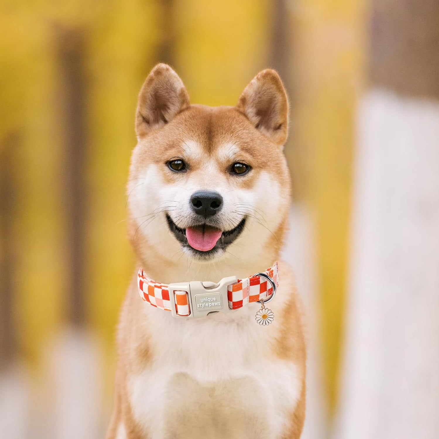 - ♥ Adjustable Fall Dog Collar ♥ : The length of the orange dog collars is adjustable and the plastic buckle is light, looks very cute. It's easy to adjust to the dimension of checkered dog collar, and you can also DIY it for your lovely puppy.