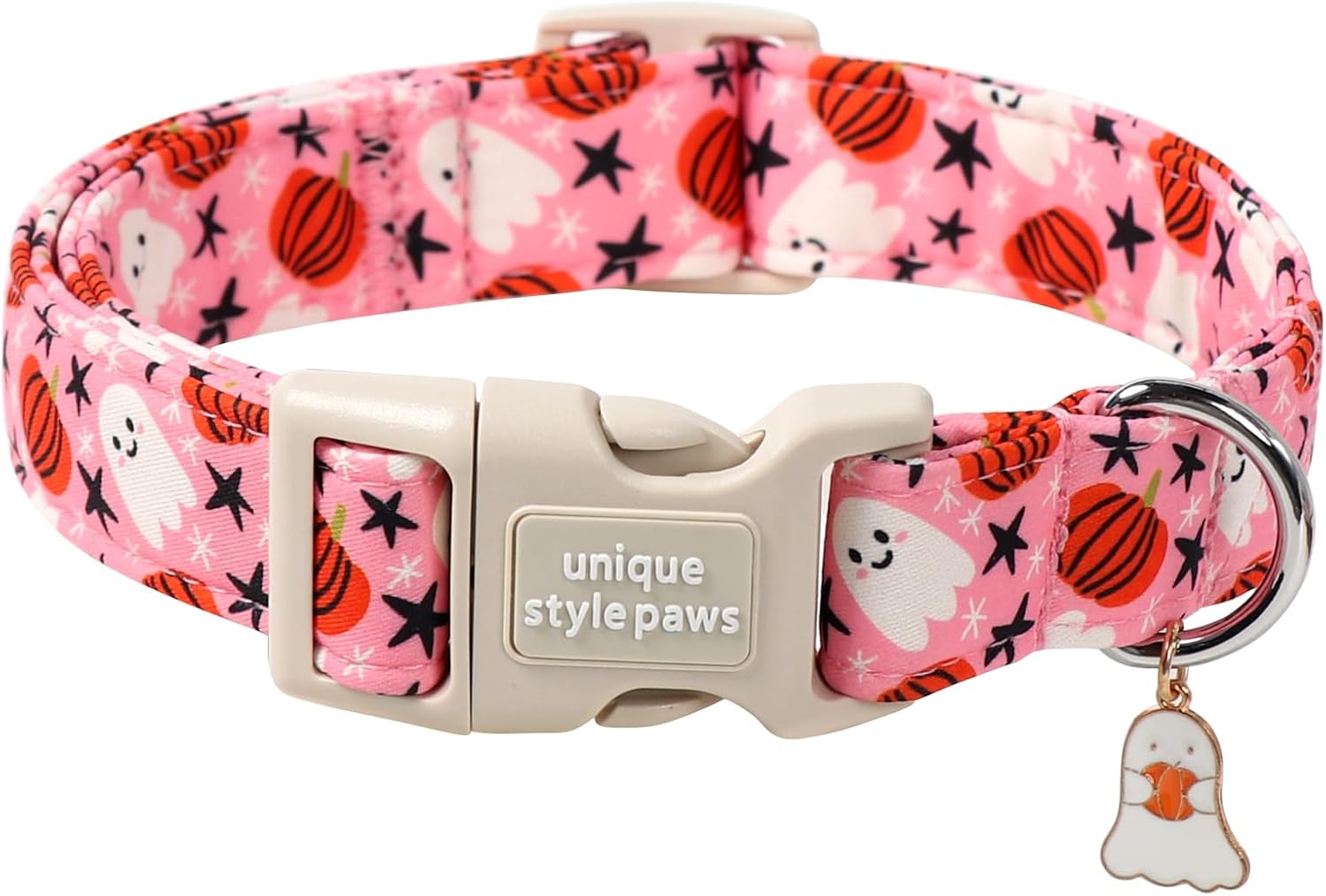 - ♥ HIGH QUALITY MATERIAL ♥: Made of natural cotton making it the smooth ideals fall dog collar for puppies, soft & breathable. The halloween dog collar has a flat alignment and the thread is not easy to take off. Dual layer makes the small dog collar girl long lasting.