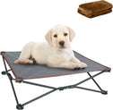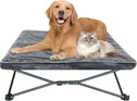 unp Raised Outdoor Dog Bed - 36 x 36 x 10-inch Portable Elevated Dog Cot Bed for Large Dogs - Removable Plush Pad, Textilene Mesh Pet Bed for Camping, Courtyard (Grey, L PRO)