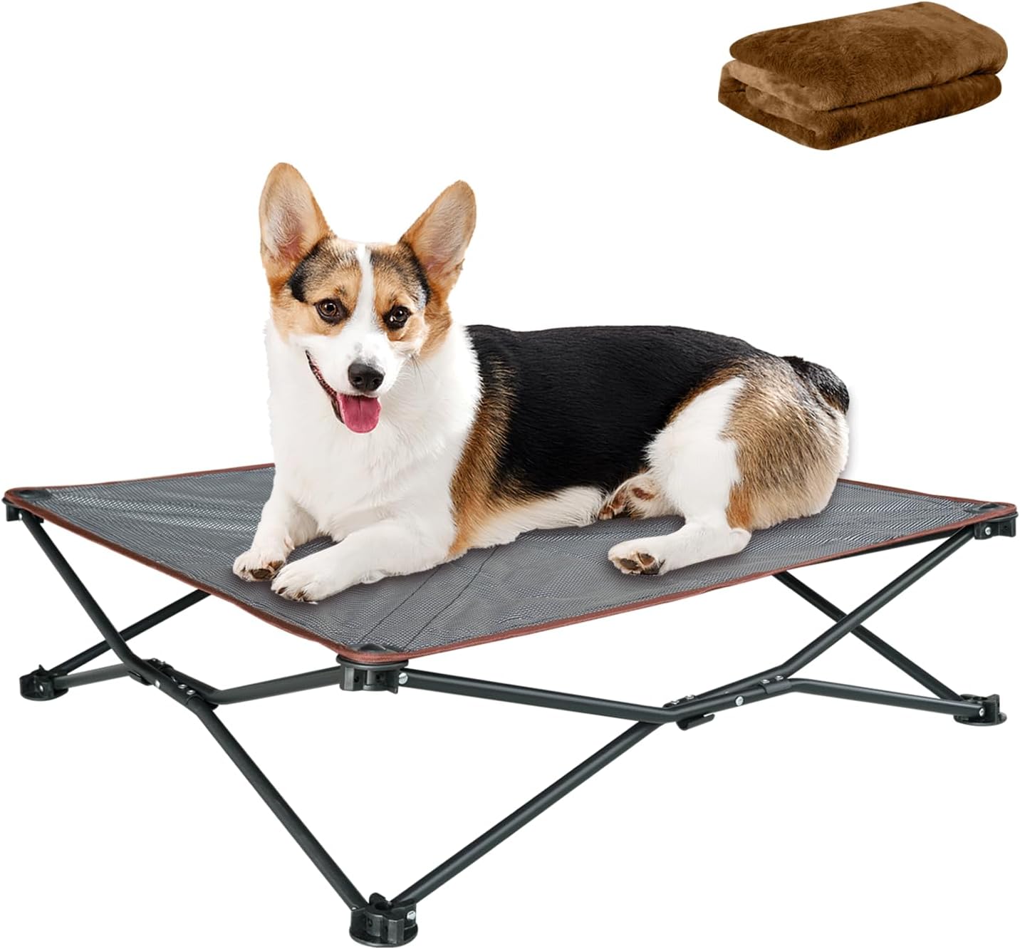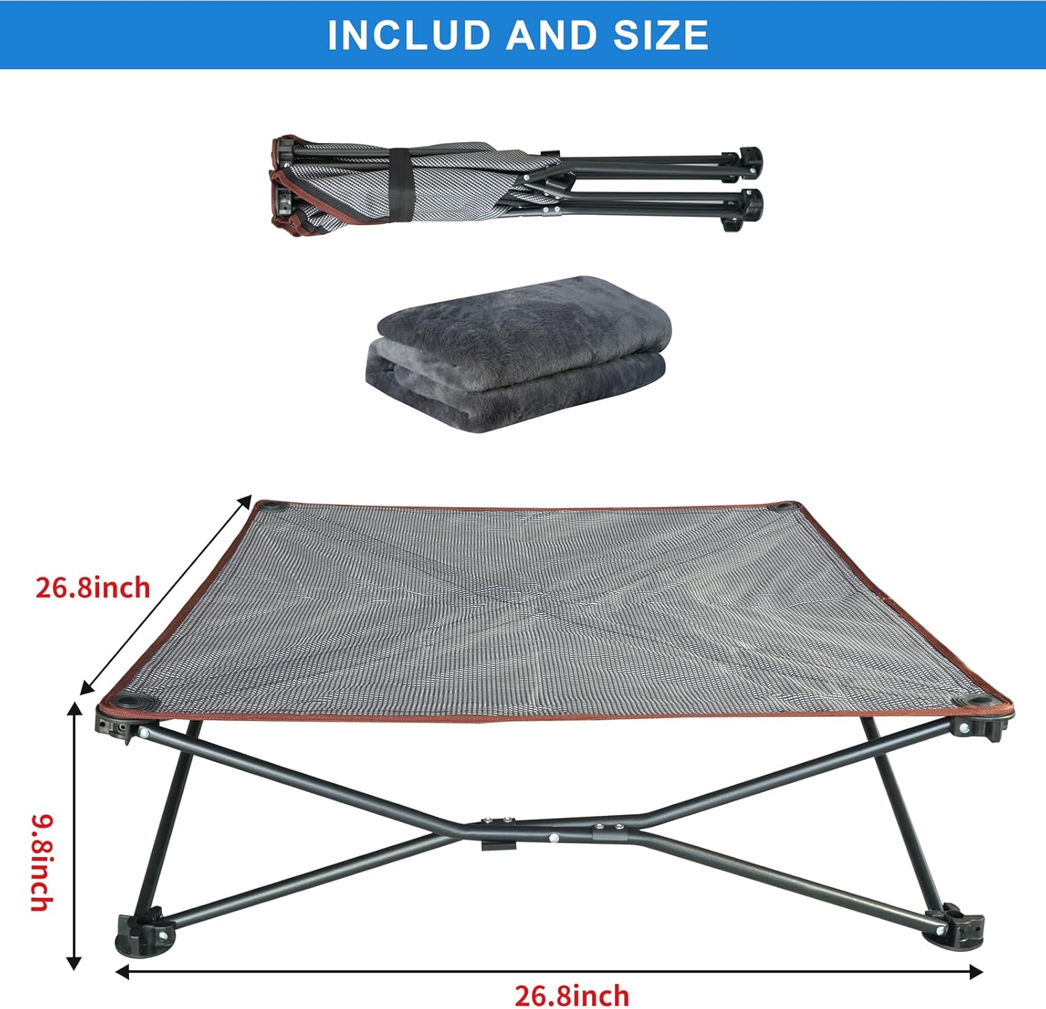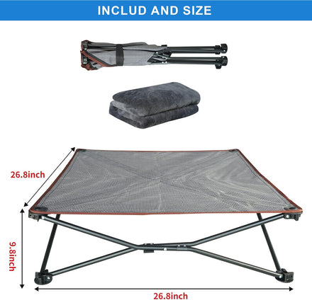 Foldable and Portable Pet Bed: Designed with a foldable design, it offers convenience for both indoor and outdoor use. The included storage bag makes it easy to carry and use while traveling. The folding dog cot is lightweight 10lb, and its unfolded size is: 35.4*35.4*9.84in.
