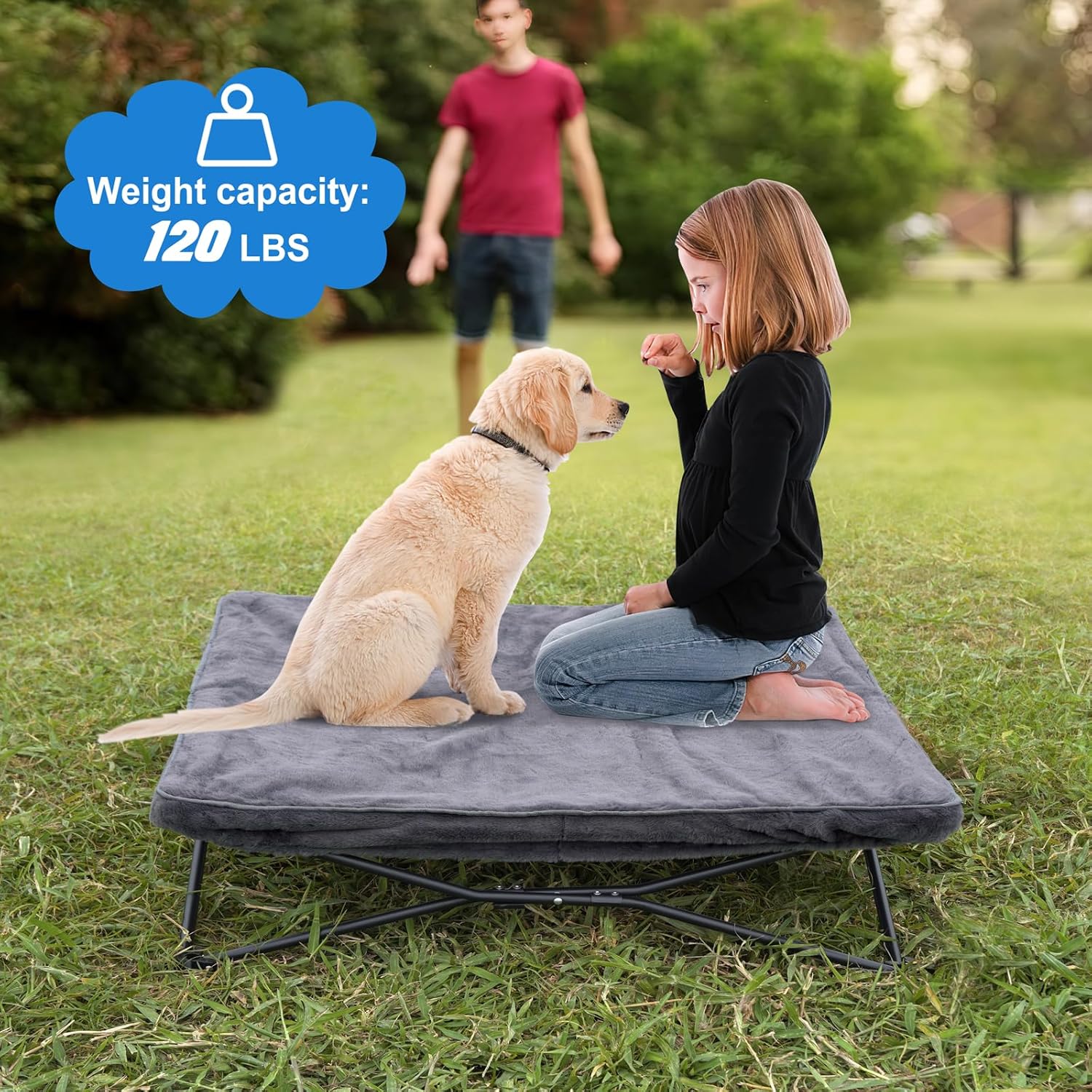 Sturdy Frame: Made with a reinforced metal pipe frame and a widened rubber anti-slip pad at the bottom. camping dog bed can support up to 120lb, providing a secure place for both cats and dogs to rest and play.