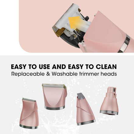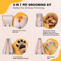 - 4 IN 1 PERFECT PET GROOMING KIT - Our dog grooming clipper with 4 replaceable trimmer heads and 6 guided combs(3 mm/6 mm/9 mm/12 mm/15 mm/18 mm). Can precisely and effectively trim hair from body, face, ears, nails, paws and rump of dogs, cats and other animals. Make your pet's hair will be perfectly trimmed to your desired length, comfortable for your pet's scalp. And give your pets a safe, relaxing and excellent grooming experience