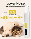 Runs at 35dB for quiet grooming. Let your pet get familiar with the sound before trimming. Treats can help keep them calm and relaxed.