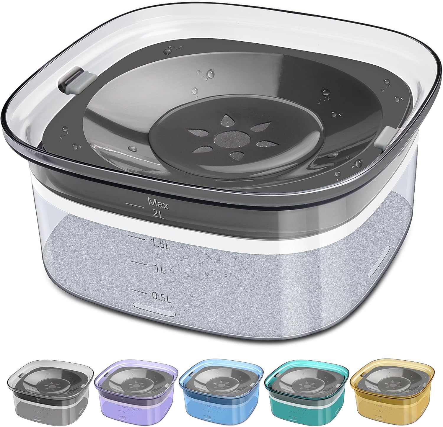 - Anti-Spill & Anti-Slip: Widened bowl mouth, floating disk, and silicone plugs combine to effectively prevent water from spilling out and keep the floor clean. The anti-slip bowl bottom helps prevent the floor from scratching.