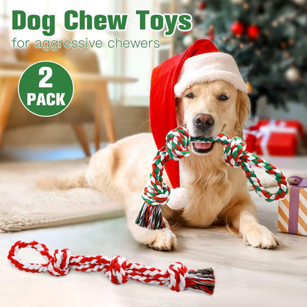UPSKY Christmas Dog Rope Toys - Nearly Indestructible, Dental Cleaning, Aggressive Chewer Toys for Medium Large Breeds
