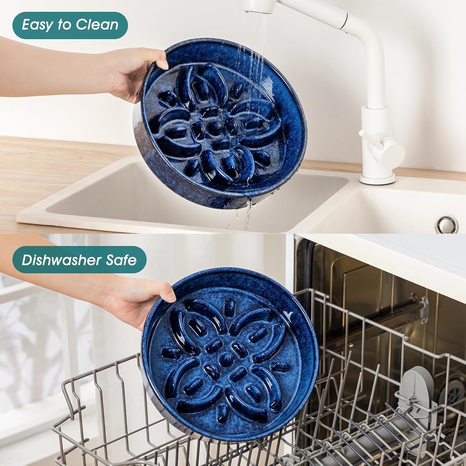 This ceramic slow feeder dog bowl design prioritizes convenience. It's dishwasher safe, saving you time and effort.