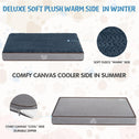 - 【SMART DESIGN PET BED】 VANKEAN reversible pet mat is available for all seasons. The cool face is made of dry and breathable canvas, suitable for hot weather. The warm face is made of ultra-soft fleece cover that giving your dogs plenty of room to sprawl out and sleep comfortably.