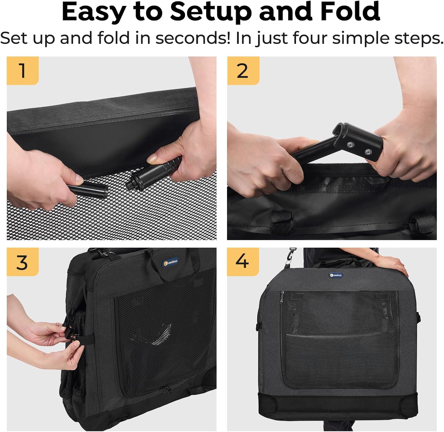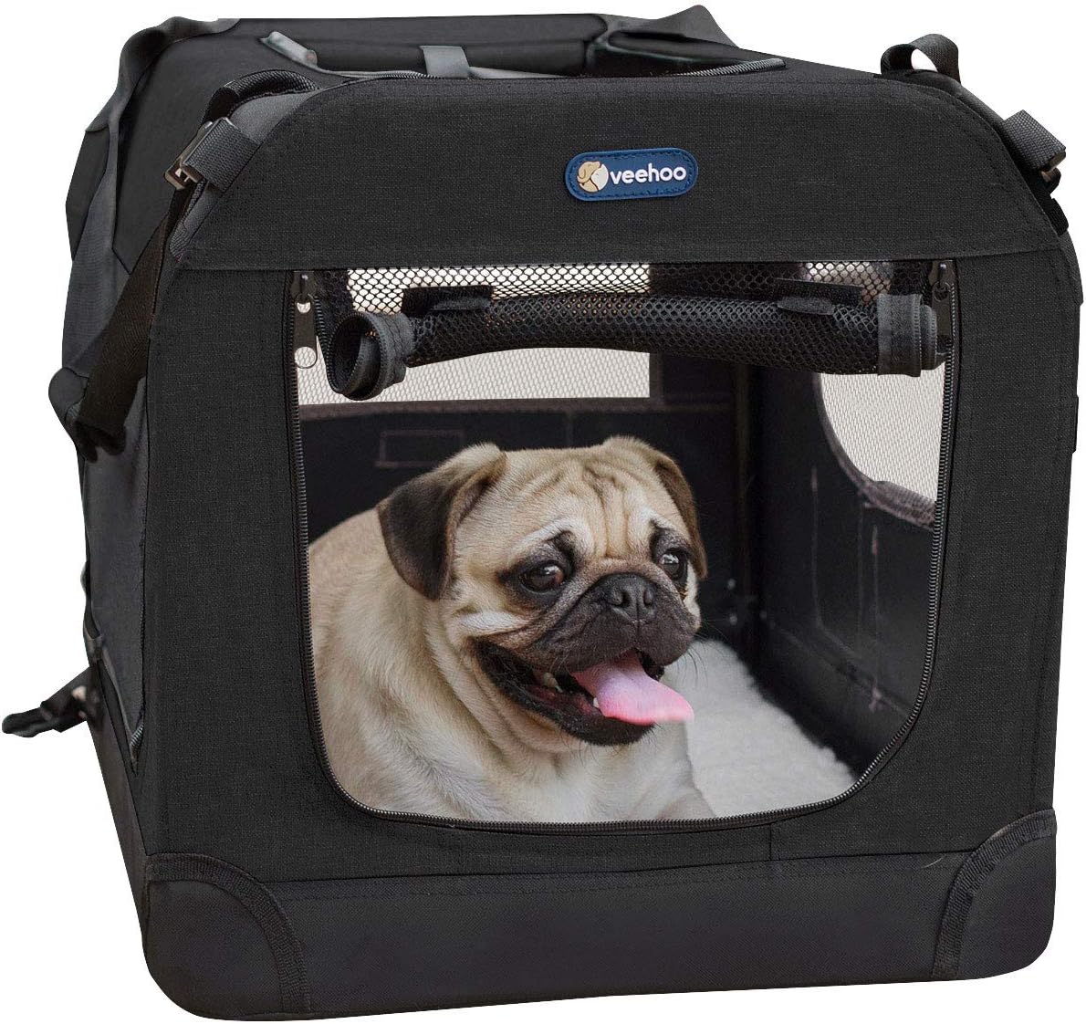 - Stable and Foldable Structure - This soft dog crates is made of all-metal frame structure, strong and stable. Collapsible steel frame with retractable springs makes setup simple (no tools needed) and fold flat for easy transport and compact storage. Easy carry with handle or strap. Adjustable strap included.
